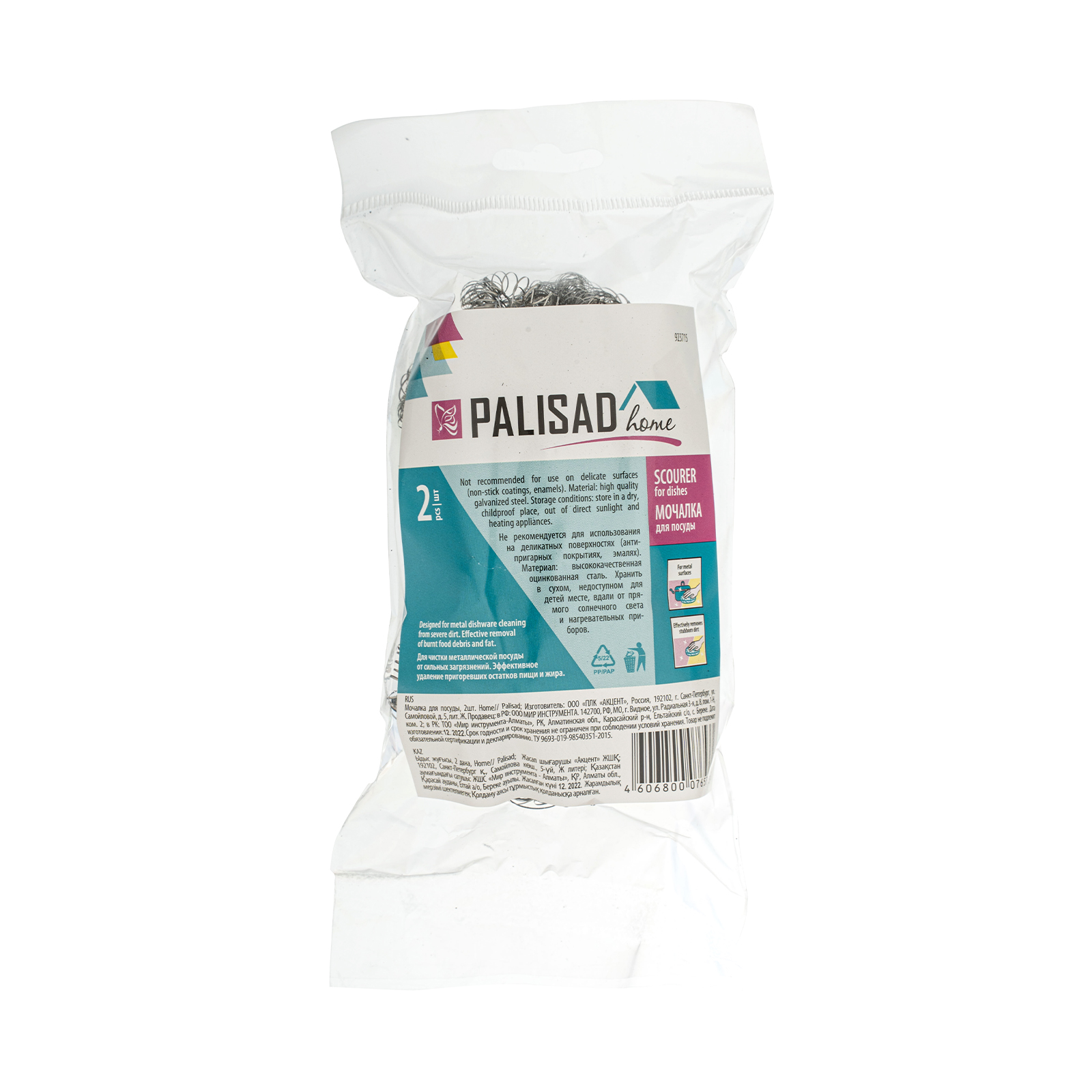 Мочалка для посуды Palisad Home 923715, 2 шт., предназначена для уборки и мытья посуды, в том числе с антипригарным покрытием, эмали и других поверхностей. Она позволяет справиться с въевшимися загрязнениями, ржавчиной и очистить пригоревший жир.