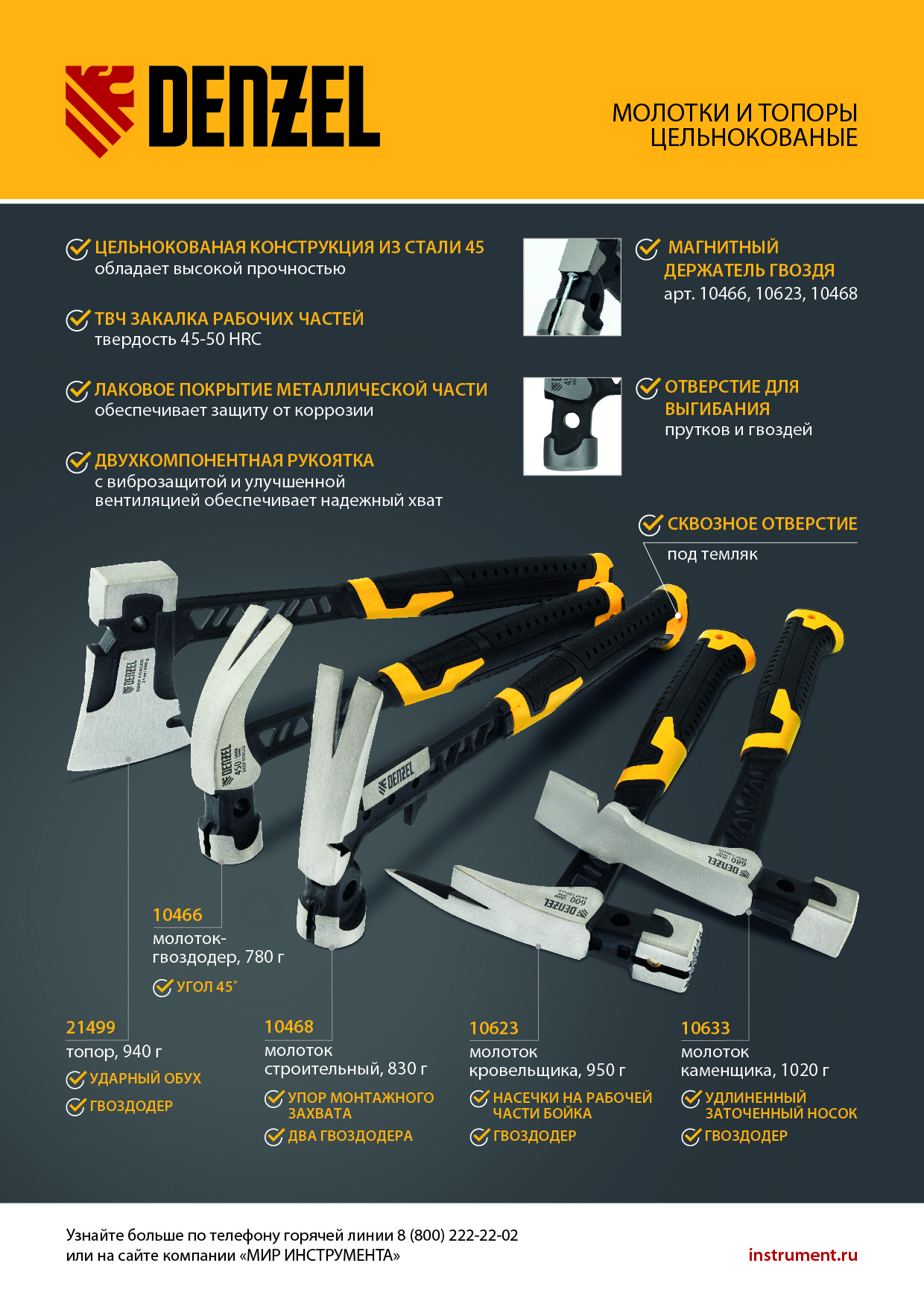 - Прочность — головка изготовлена из среднеуглеродистой стали 45, цельнокованый корпус исключает поломку или повреждение рукоятки.