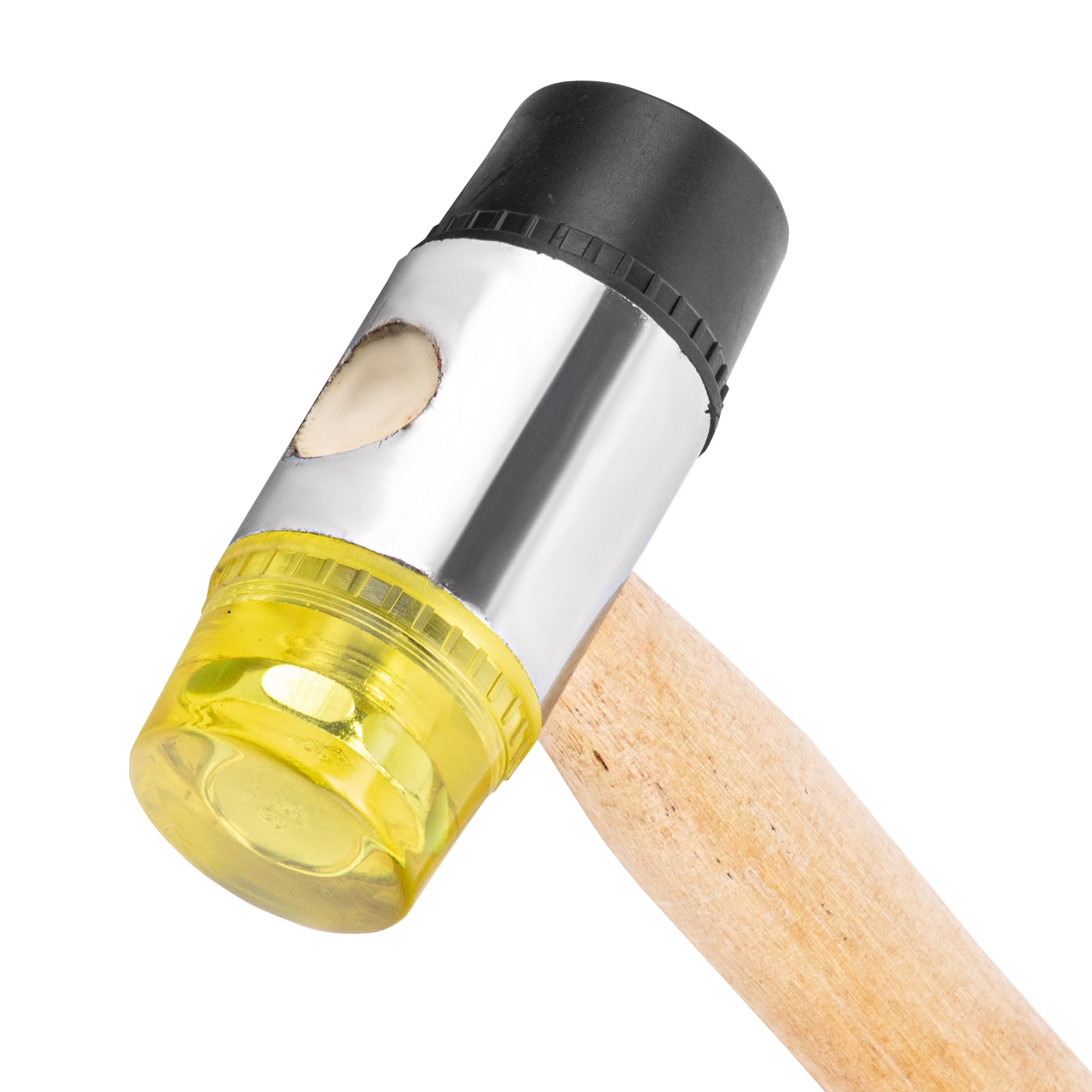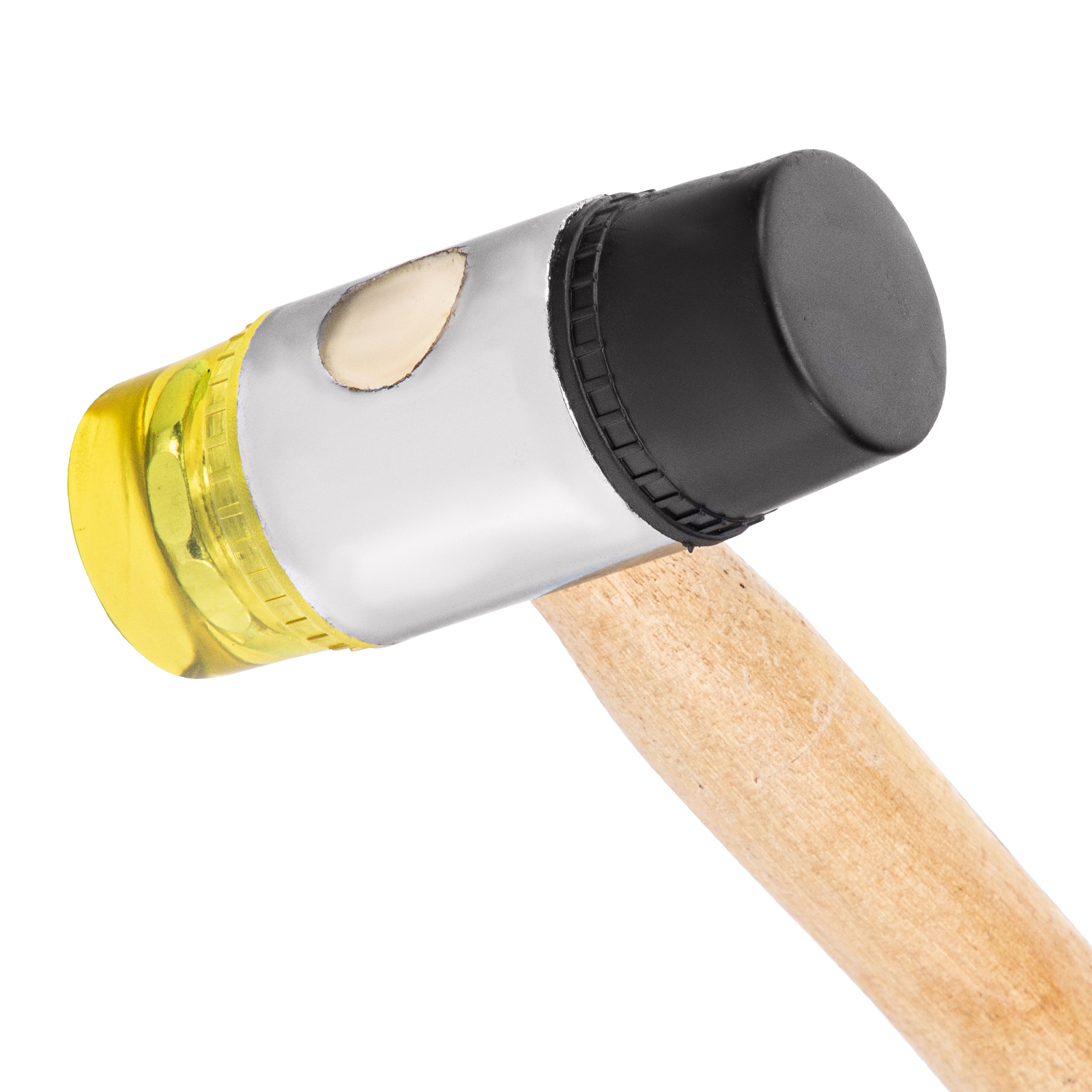 Рихтовочный молоток Sparta 108305 с бойками диаметром 35 мм, комбинированной головкой и деревянной ручкой, предназначен для выпрямления деформированного листового металла или более мягких материалов. Не повреждает поверхность при ударах. Будет полезен в слесарной мастерской, в гараже, а также дома или на даче.