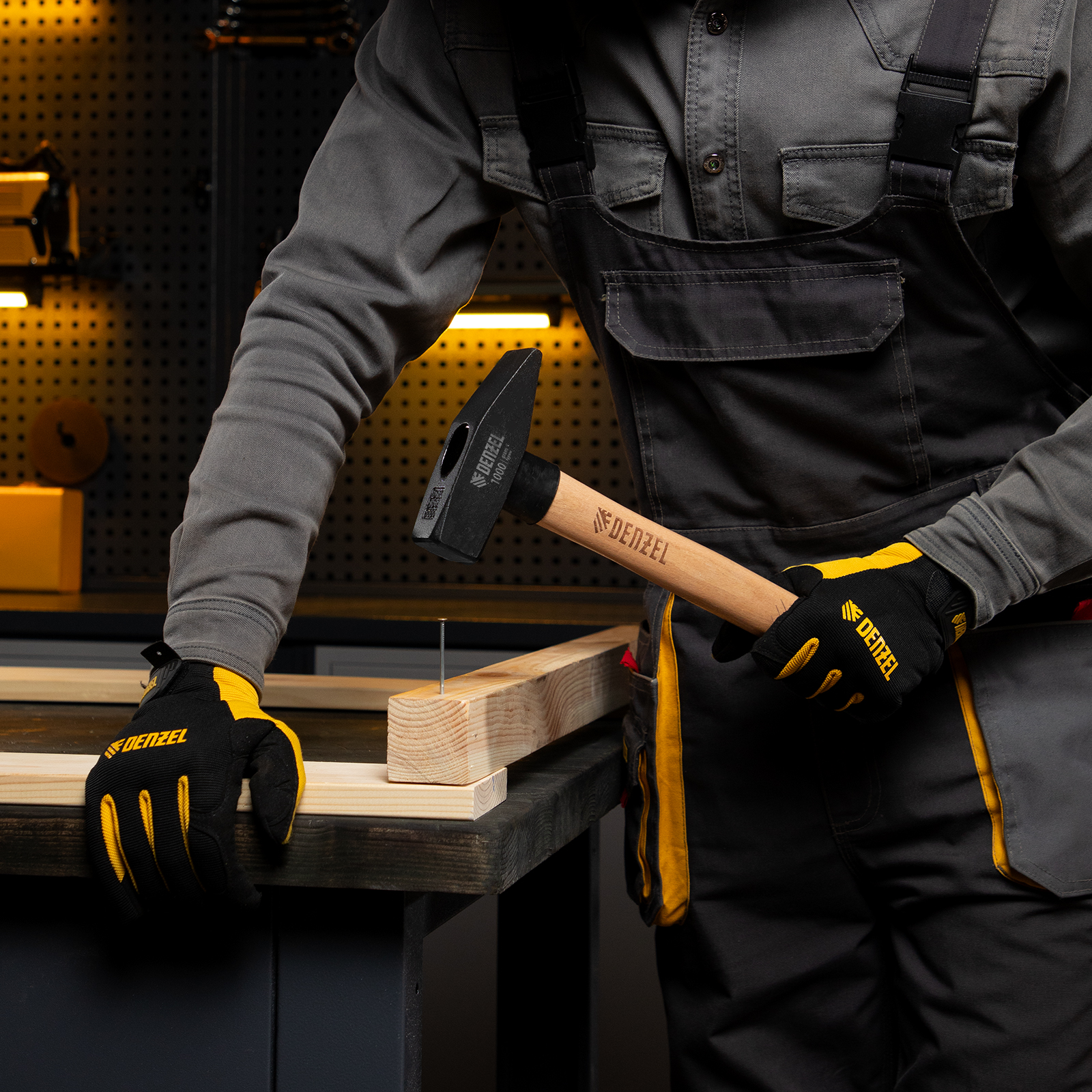Слесарный молоток Denzel 10437 с квадратным кованым бойком весом 1000 г предназначен для забивания гвоздей и другого крепежа и для работы с металлическими заготовками. Инструмент применяется во время слесарных или столярных работ в быту, также будет полезен профессионалам.