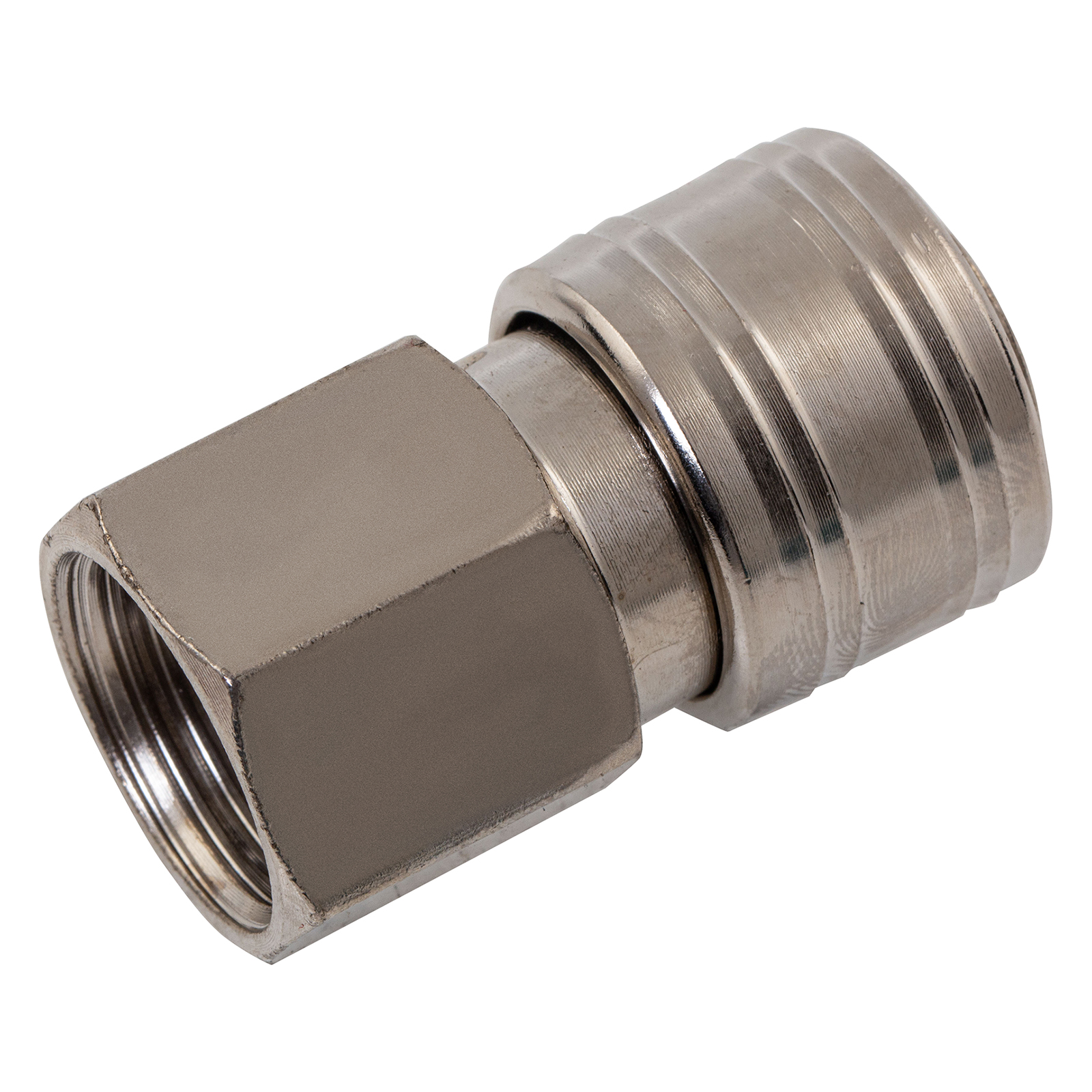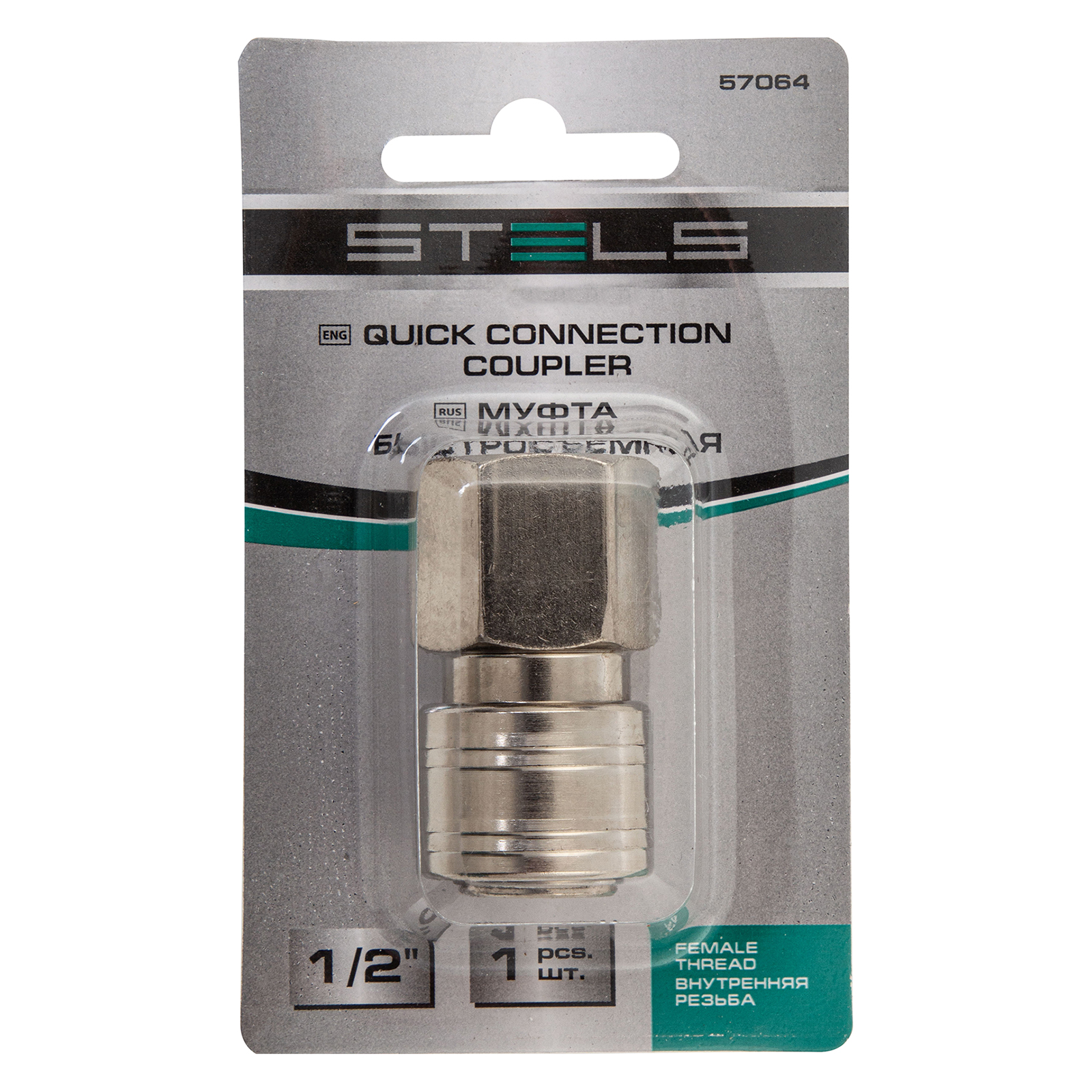 Универсальная муфта Stels 57064 с внутренней резьбой 1/2 дюйма, 1 шт. в упаковке, рассчитана на присоединение шланга пневмоинструмента к компрессору с быстросъемным рапидом «мама». Пригодится во время строительства, ремонта, также будет полезна в автосервисе и гараже.