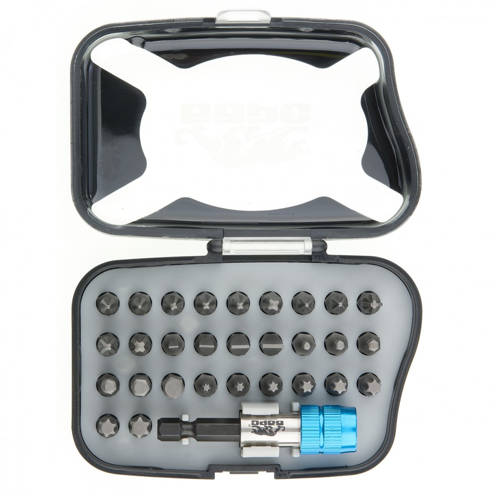 - биты с профилем PH1 2, PH2 3, PH3, PZ1 2, PZ2 2, PZ3, SL3, SL4.5, SL5.5, SL6.5, T9, T10, T15, T20, T25, T27, T30, T40, H2, H2.5, H3, H4, H5, H6.