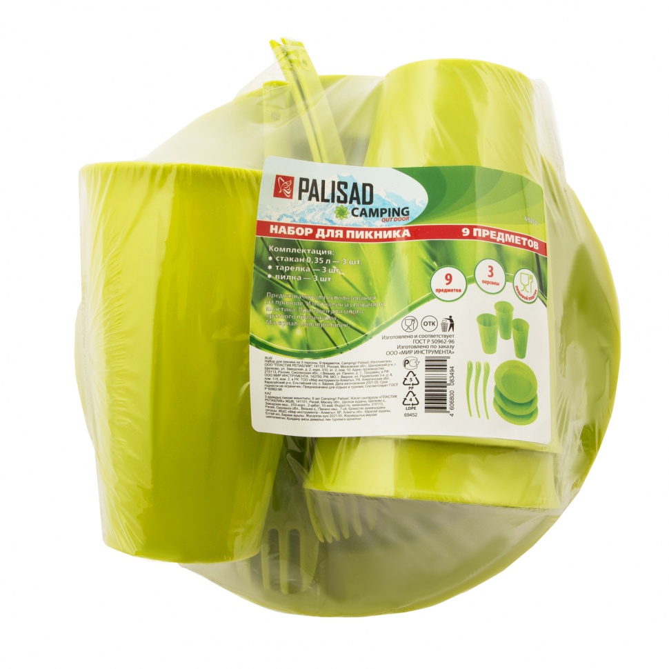 Набор для пикника на 3 персоны Camping Palisad 69452 состоит из 9 предметов. Посуда предназначена для холодной и горячей пищи. Такой набор будет полезен не только на пикнике, но и на даче.