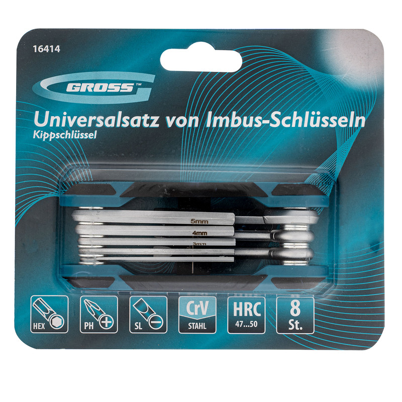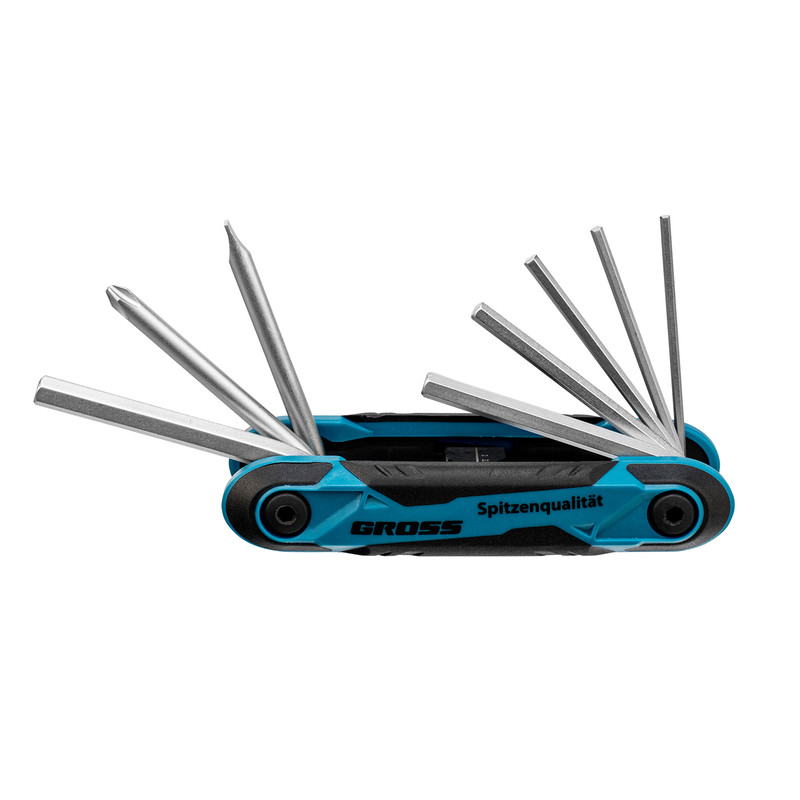 Универсальный набор складных имбусовых ключей Gross 16414 включает 8 предметов и применяется для демонтажа и монтажа крепежей со шлицами HEX, PH и SL. В набор входят ключи самых распространенных размеров, что позволяет решить большинство задач. С его помощью можно собрать мебель, отремонтировать спортинвентарь, бытовую технику. Набор подходит для профессионального и домашнего использования.