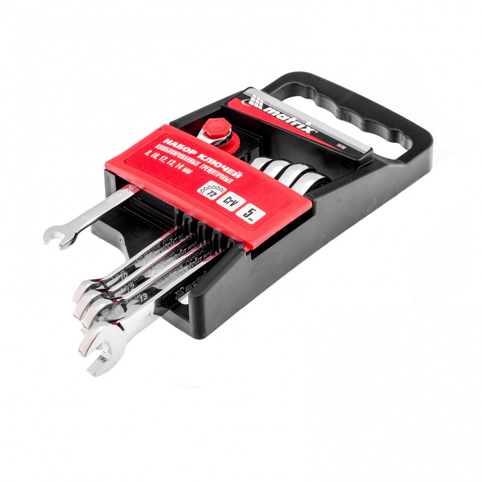 Набор из 5 комбинированных трещоточных ключей Matrix 14793 пригодится мастерам и автолюбителям для монтажа/демонтажа болтов и гаек наиболее популярных типоразмеров. Храповой механизм с 72 зубьями облегчает закручивание или откручивание крепежей, в том числе в труднодоступных местах.