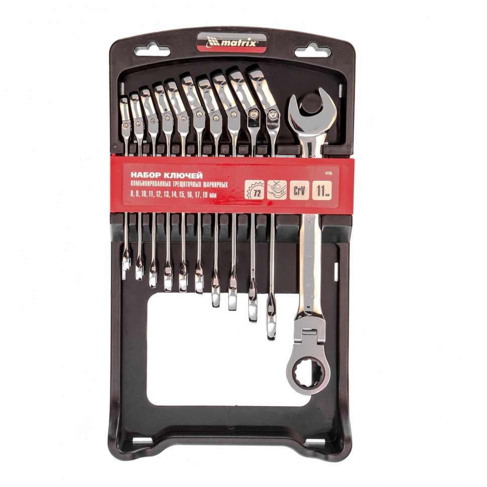 Набор ключей комбинированных, трещоточных шарнирных - 11 шт |