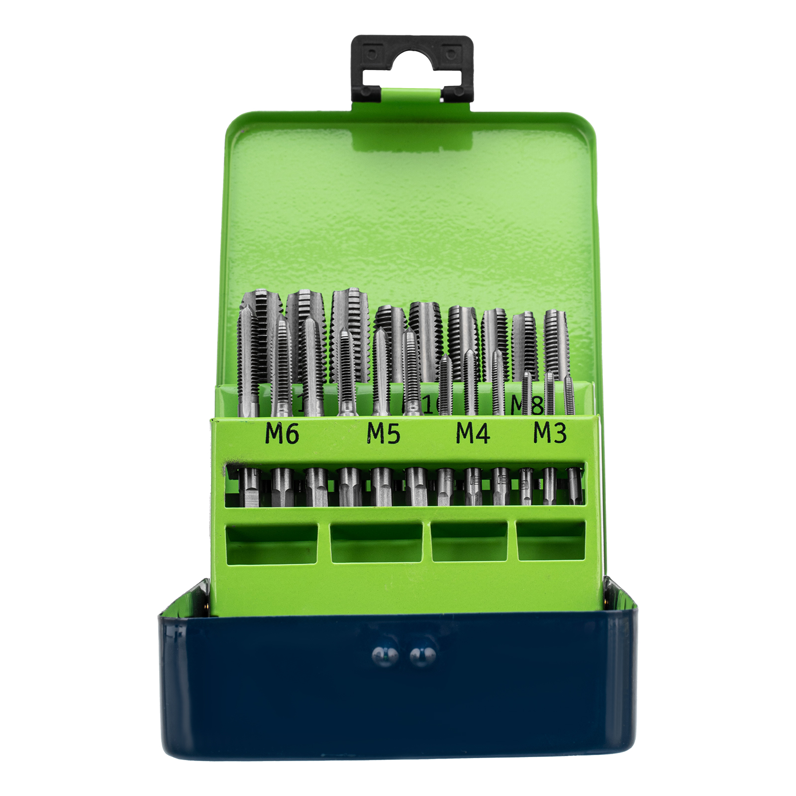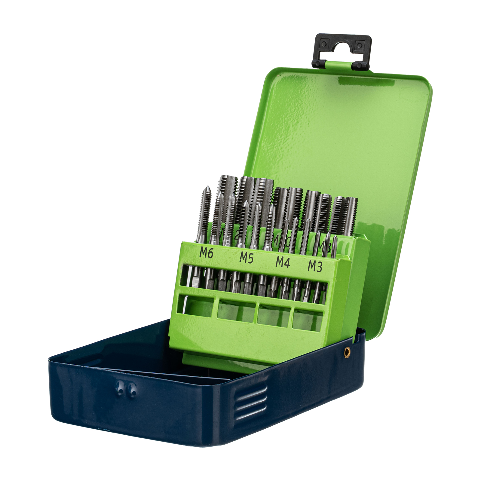 - Высокое качество резьбы — в набор входит по 3 метчика каждого размера: №1 для первичного прохода, №2 для повышения точности витков и №3 для финишной доводки.
