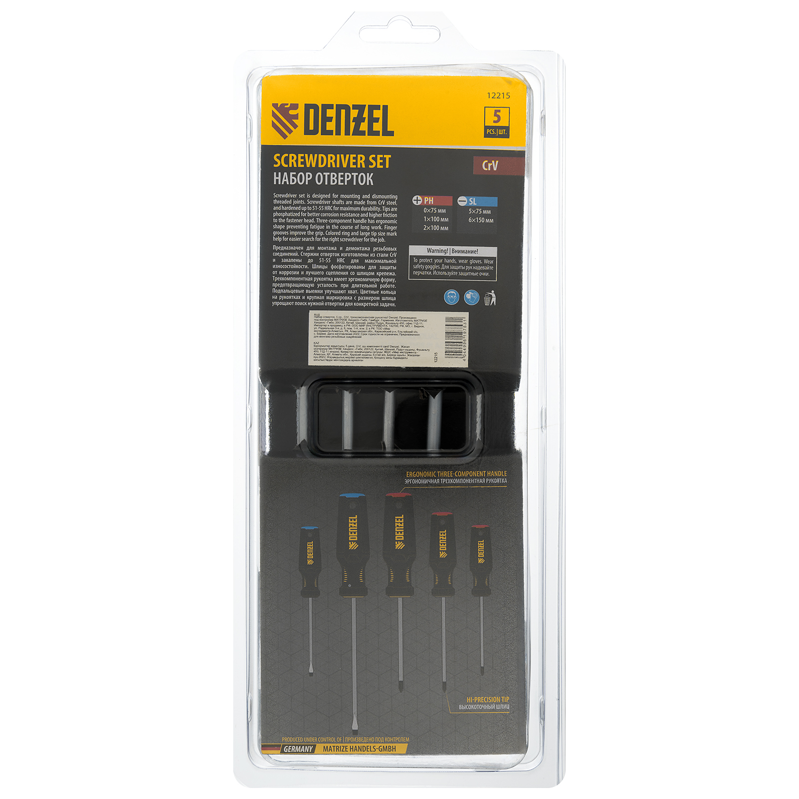 Отвертки SL5x75, SL6x150, PH0x75, PH1x100, PH2x100 - 5 шт |