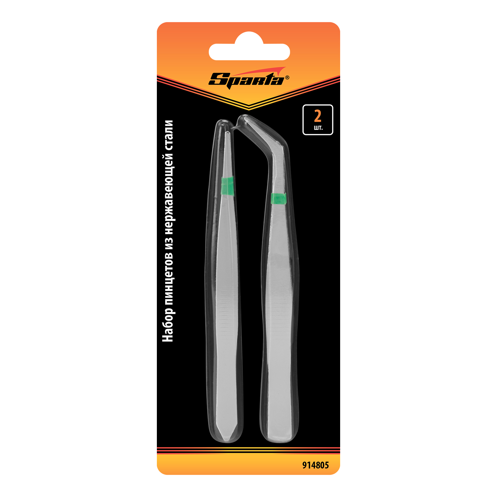 Набор Sparta 914805 включает в себя 2 пинцета для удержания мелких деталей. Инструменты прямой и изогнутой формы пригодятся мастерам, работающим с элементами, которые нельзя или неудобно захватывать руками. Набор оптимален для хенд-мейда, ремонта бытовой техники, часов и т.д.