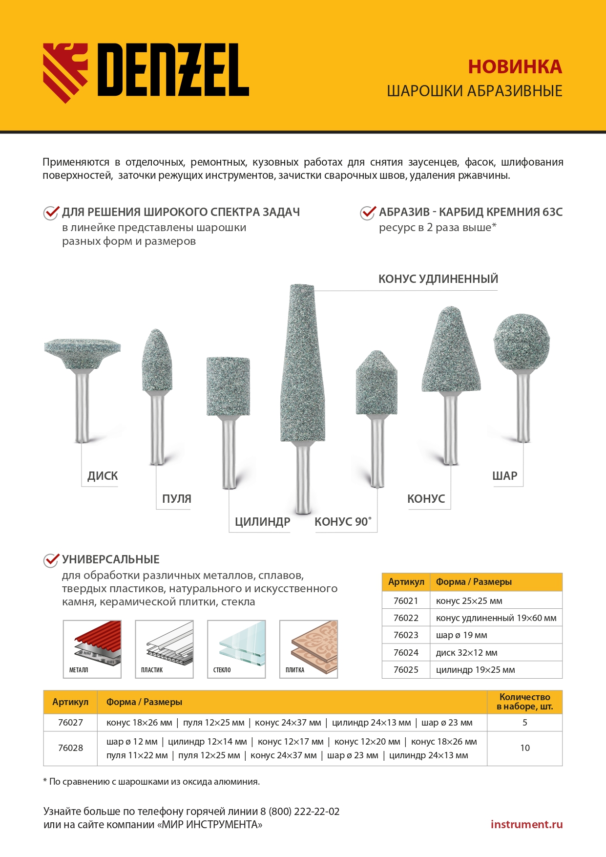 - Универсальность — шарошки подходят для обработки металла, различных сплавов, стекла, пластика, керамической плитки, натурального и искусственного камня.