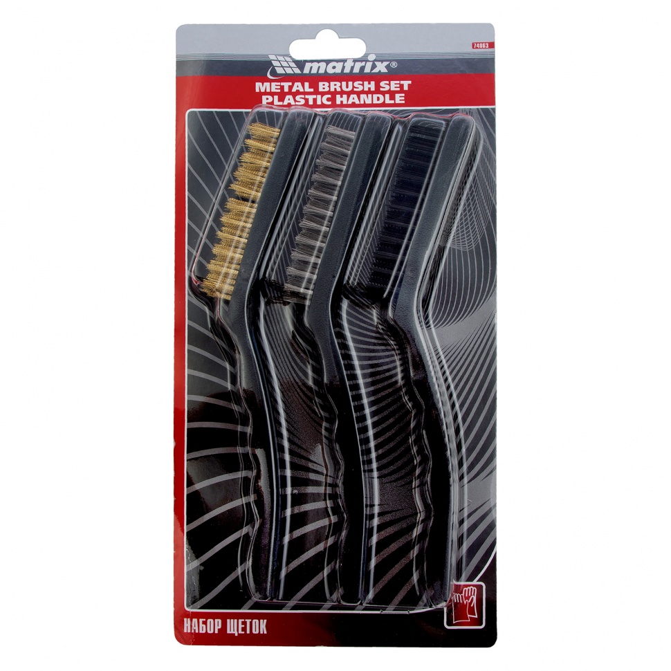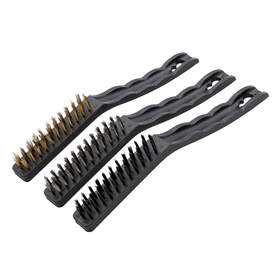 Набор больших щеток Matrix 74863 с пластмассовыми ручками предназначен для различных видов обработки — стальные удаляют ржавчину, загрязнения и старую краску с металлических и других поверхностей, а нейлоновая браширует и мягко очищает деревянные изделия. Набор пригодится во время ремонта, кузовных работ, а также будет полезен в быту.