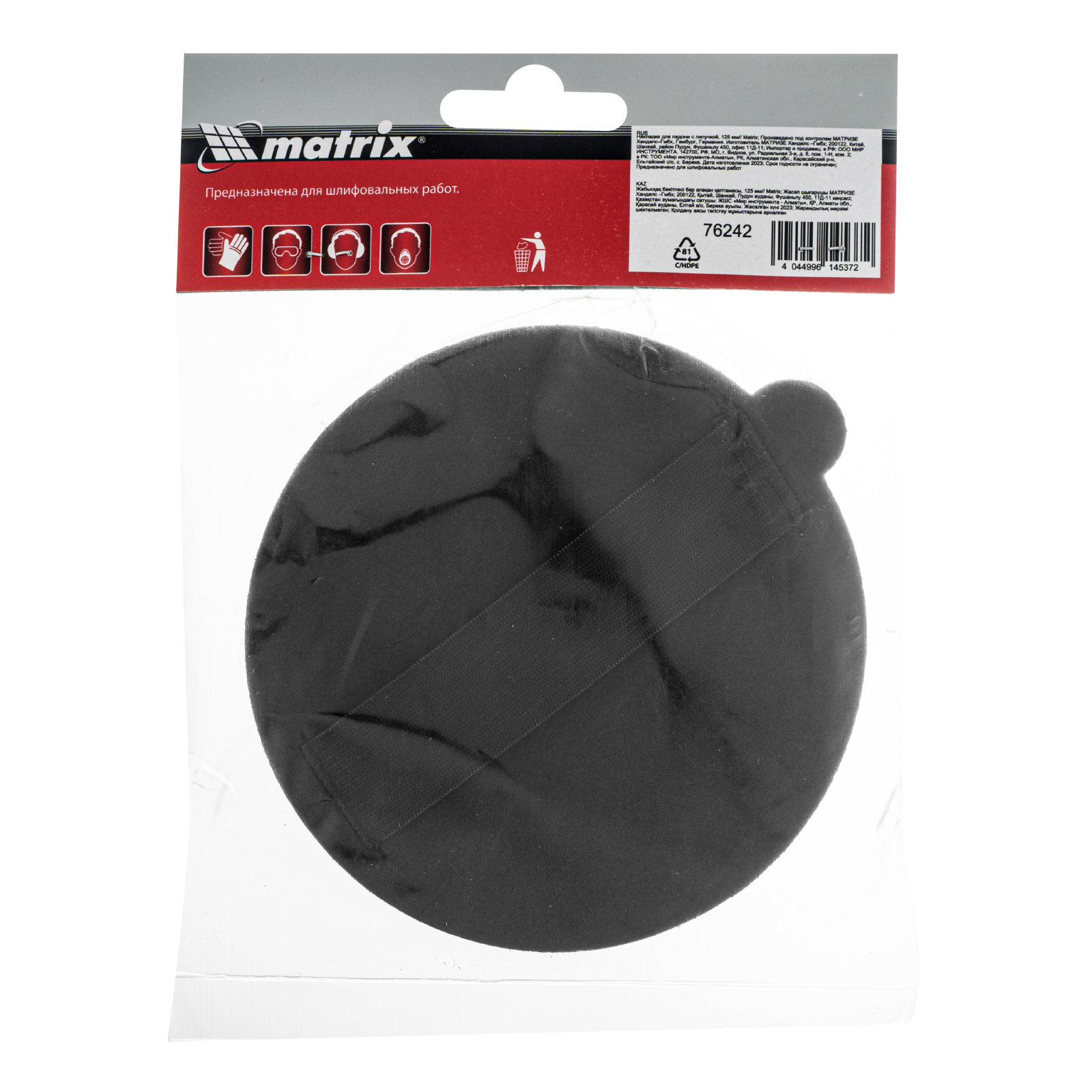 Накладка для ладони Matrix 76242 с «липучкой» совместима с абразивными дисками диаметром 125 мм и применяется для мелких шлифовальных работ. Подходит для корректировки шпатлеванных поверхностей, а также для обработки небольших изделий из металла, древесины, пластика, стекла и т. д.