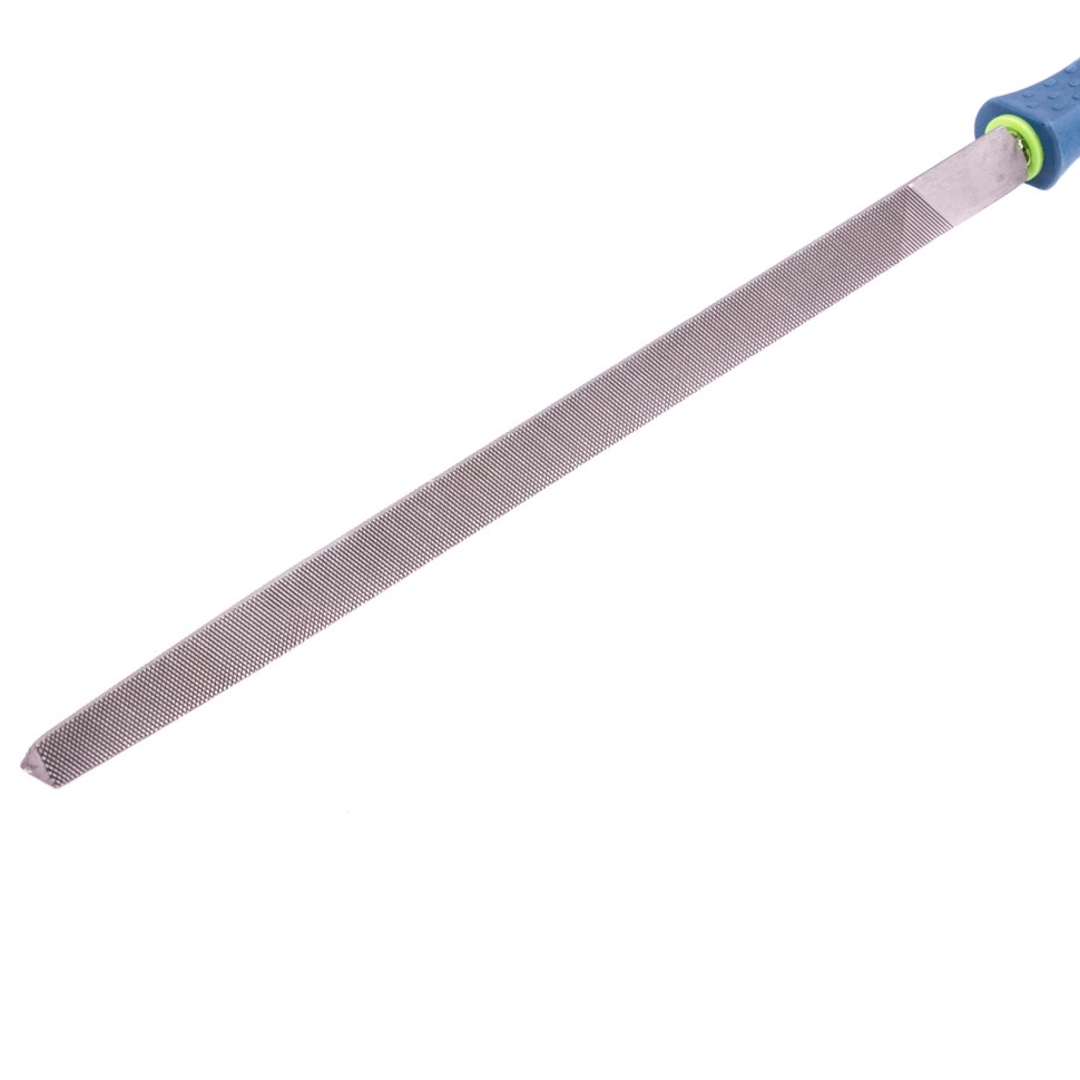 Трехгранный напильник Сибртех 16031, длина рабочей части 300 мм, с насечкой №2 и двухкомпонентной рукояткой, используется для ручной доводки металлических деталей, придания им нужной формы и размера. Оптимален для обработки треугольных отверстий, граней, пазов, внутренних углов. Насечка №2 с 13-25 зубьями на 1 см длины обеспечивает точную шлифовку после применения драчевого напильника. Инструмент будет полезен мастерам и любителям слесарного дела.