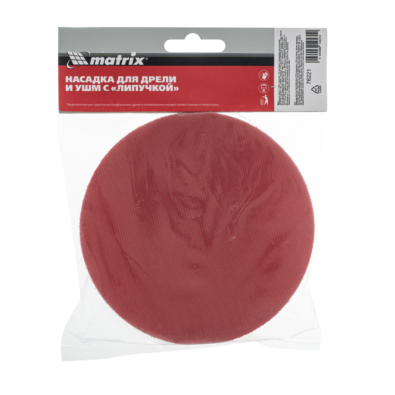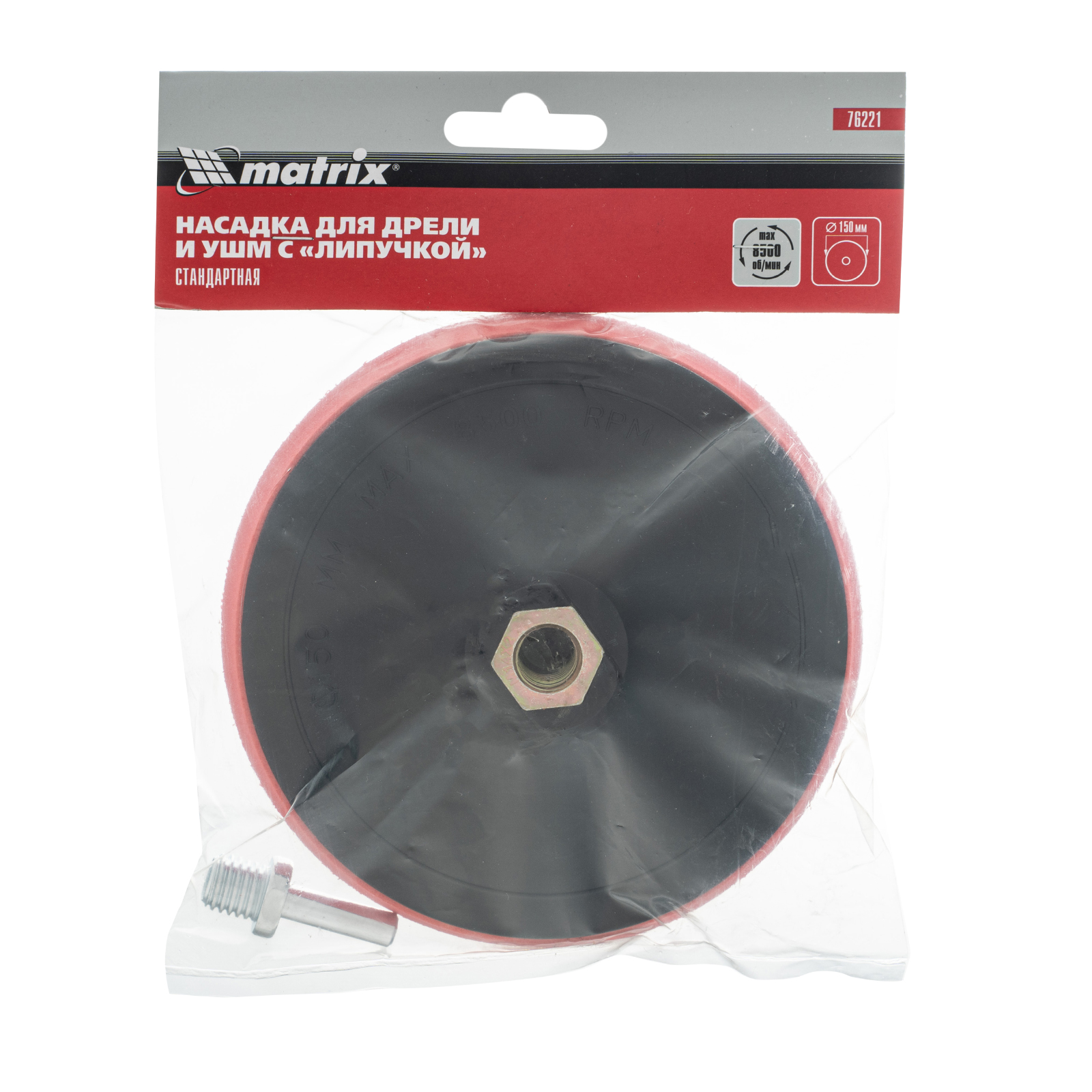 Насадка для дрели и УШМ с липучкой Matrix 76221 используется с дрелями и углошлифовальными машинами, поддерживающими оснастки диаметром 150 мм и имеющими рабочий диапазон вращения до 8500 об/мин. Предназначена для установки абразивных и полировальных кругов на ворсовой подложке. Насадка с демпферной вставкой из вспененного этиленвинилацетата (EVA) универсальна и подходит для всех видов полировальных и шлифовальных работ.