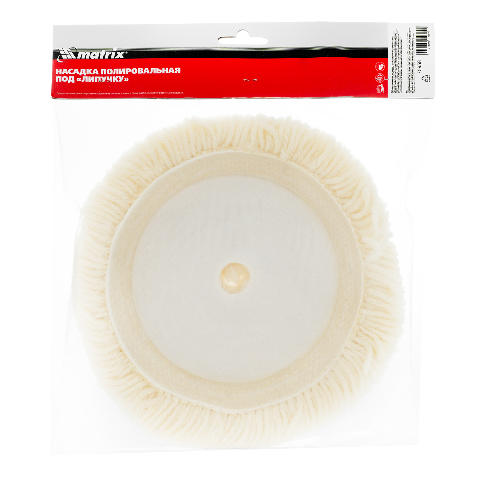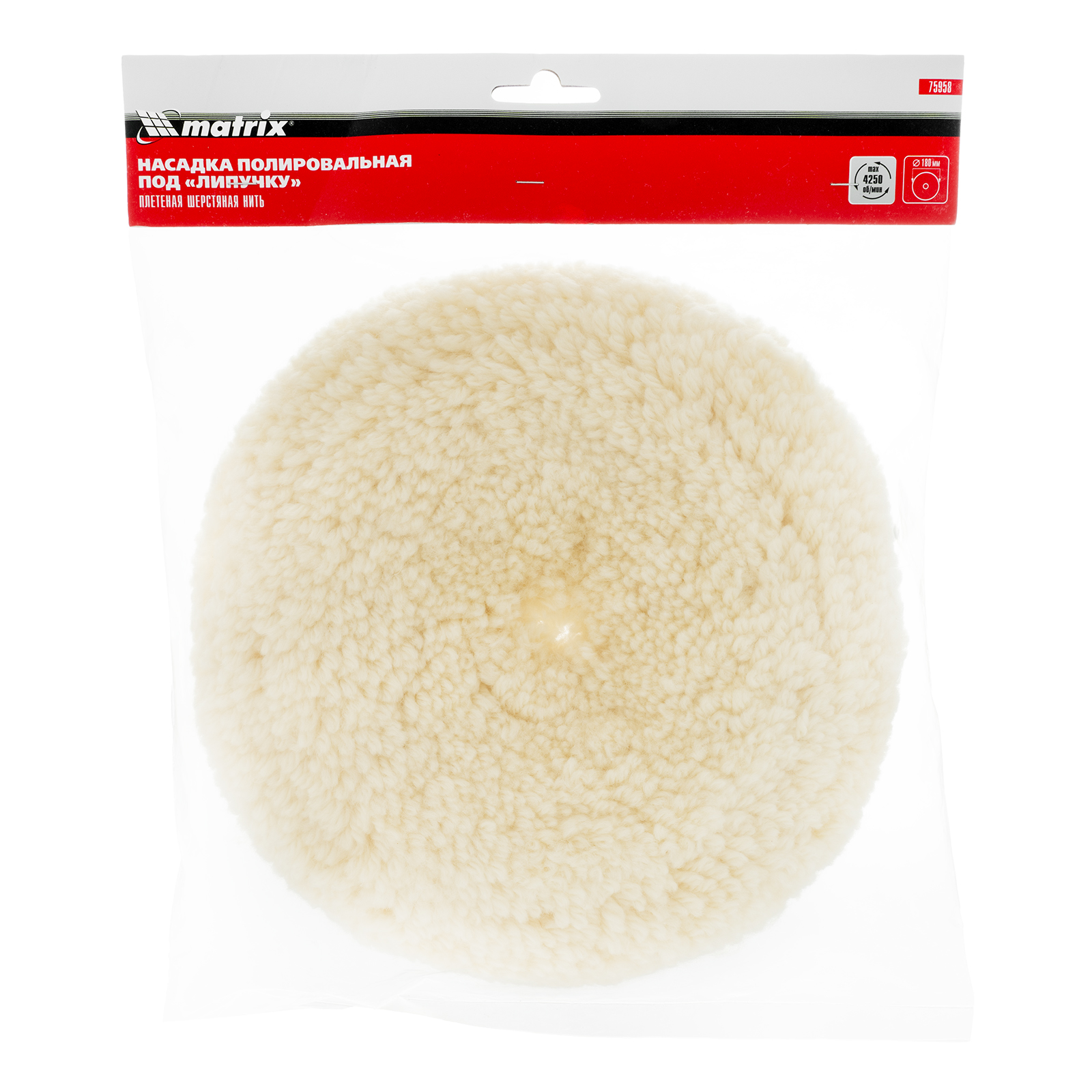 Полировальная насадка «под липучку» Matrix 75958 диаметром 180 мм, с рабочей поверхностью из плетеной шерстяной нити, применяется совместно со шлифовальными машинками, а также дрелями и УШМ с установленной опорной тарелкой «под липучку» соответствующего типоразмера. Ворс высотой 30 мм обладает хорошей полирующей способностью, эффективно устраняет микротрещины и придает блеск. Насадку используют для полировки металлических и стеклянных поверхностей, а также лакокрасочных покрытий, преимущественно во время проведения кузовных работ.