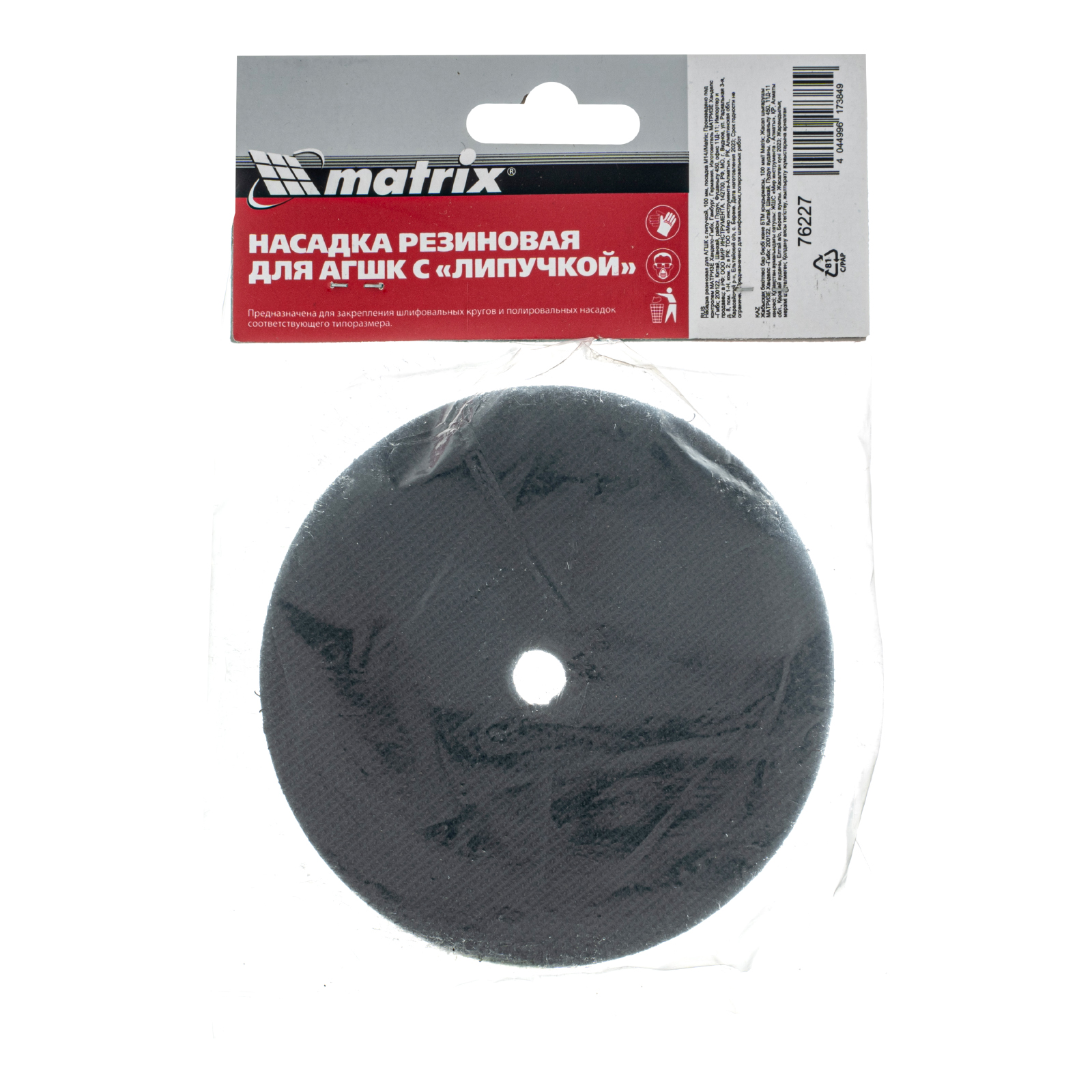 Резиновая насадка для АГШК с «липучкой» Matrix 76227 диаметром 100 мм, с посадочной резьбой М14, — опора для крепления алмазных гибких шлифовальных кругов, или «черепашек». Совместима с углошлифовальными машинами, работающими с частотой вращения до 12500 об/мин. Изготовлена из прочной резины, обеспечивает хороший контакт шлифкруга с обрабатываемой поверхностью. Насадка применяется для шлифовки и полировки каменных, гранитных, мраморных и керамогранитных поверхностей.