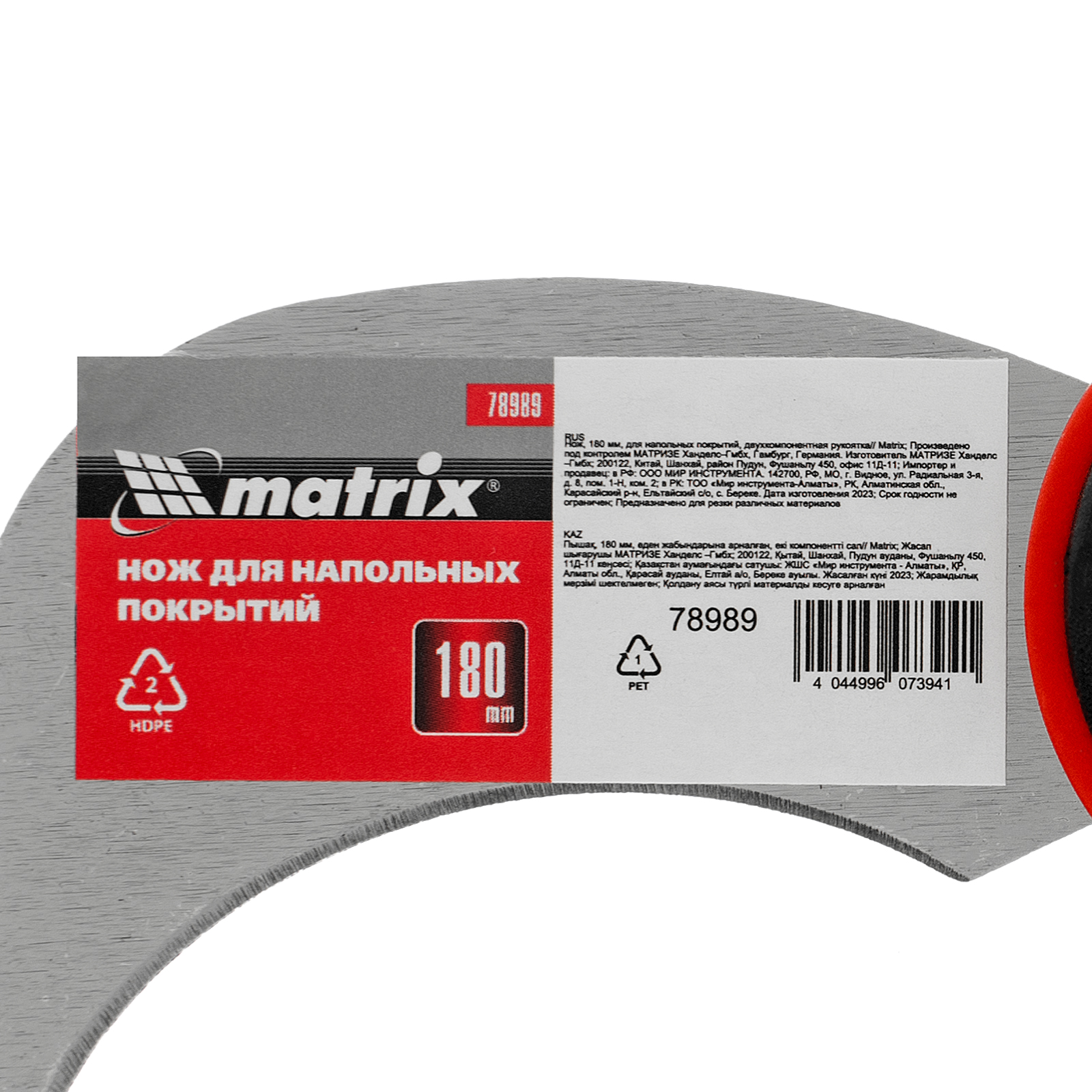 Нож Matrix 78989 длиной 180 мм, с двухкомпонентной рукояткой, применяется для разрезания мягких напольных покрытий. Острое лезвие длиной 70 мм легко справляется с линолеумом, ковролином и другими материалами. Изогнутая форма полотна предотвращает повреждение рабочей кромки, если резка происходит на твердой поверхности. Инструмент используется во время проведения отделочных работ.
