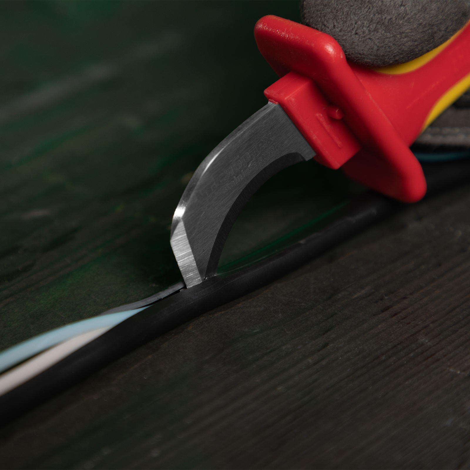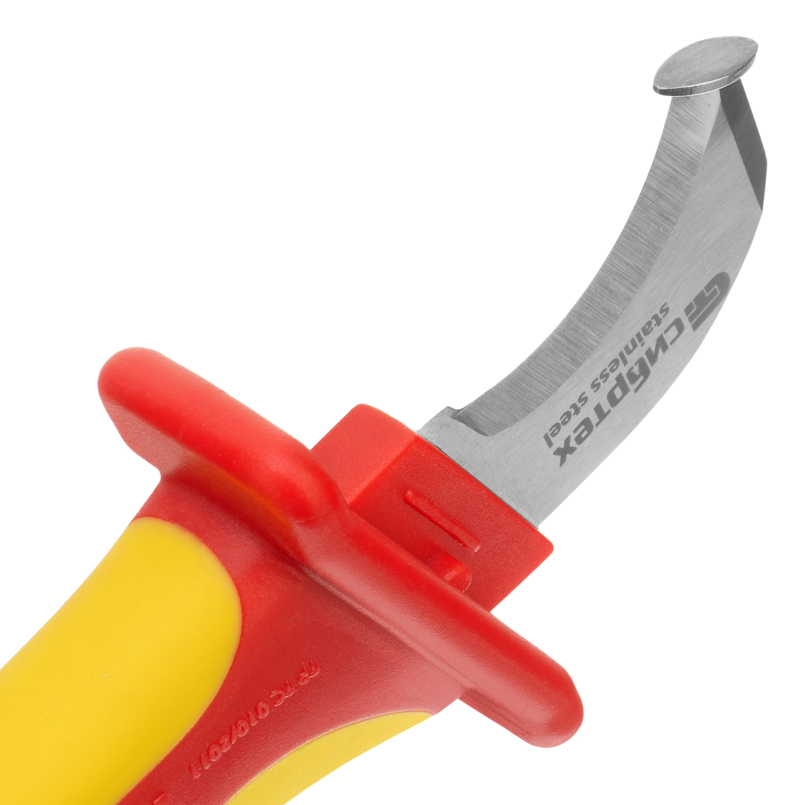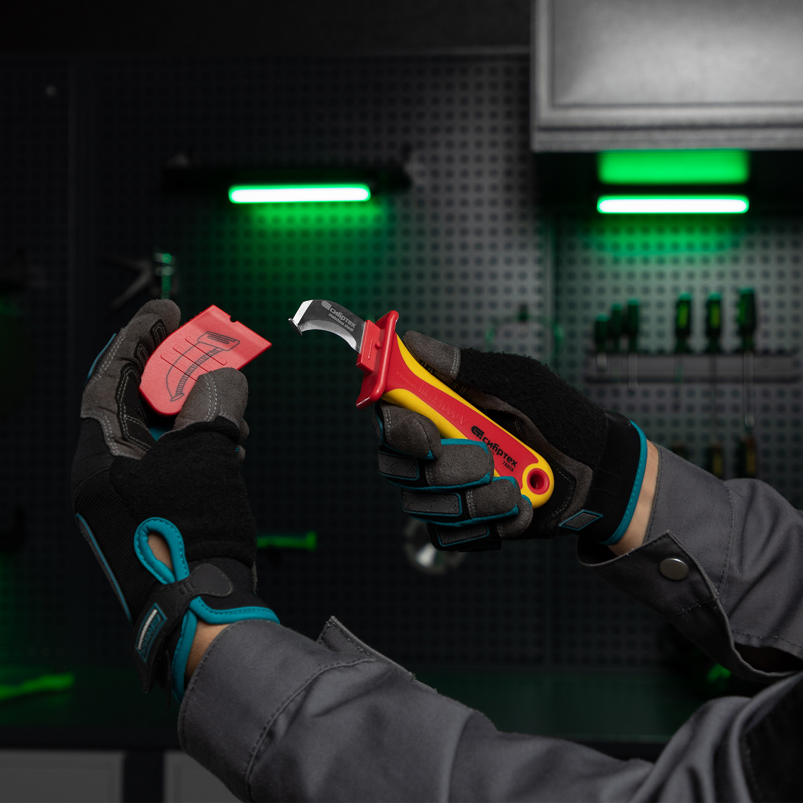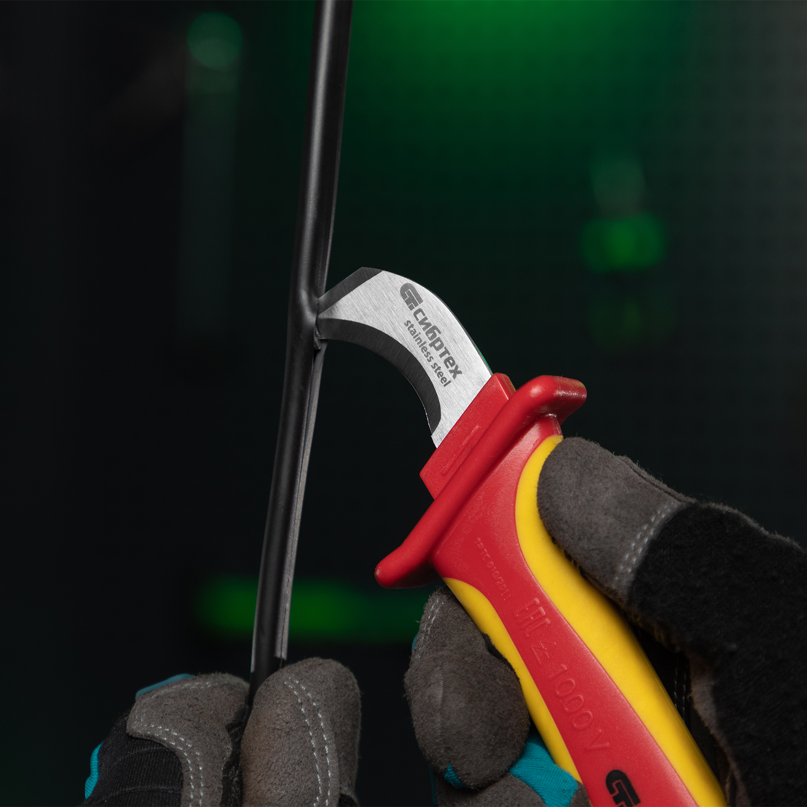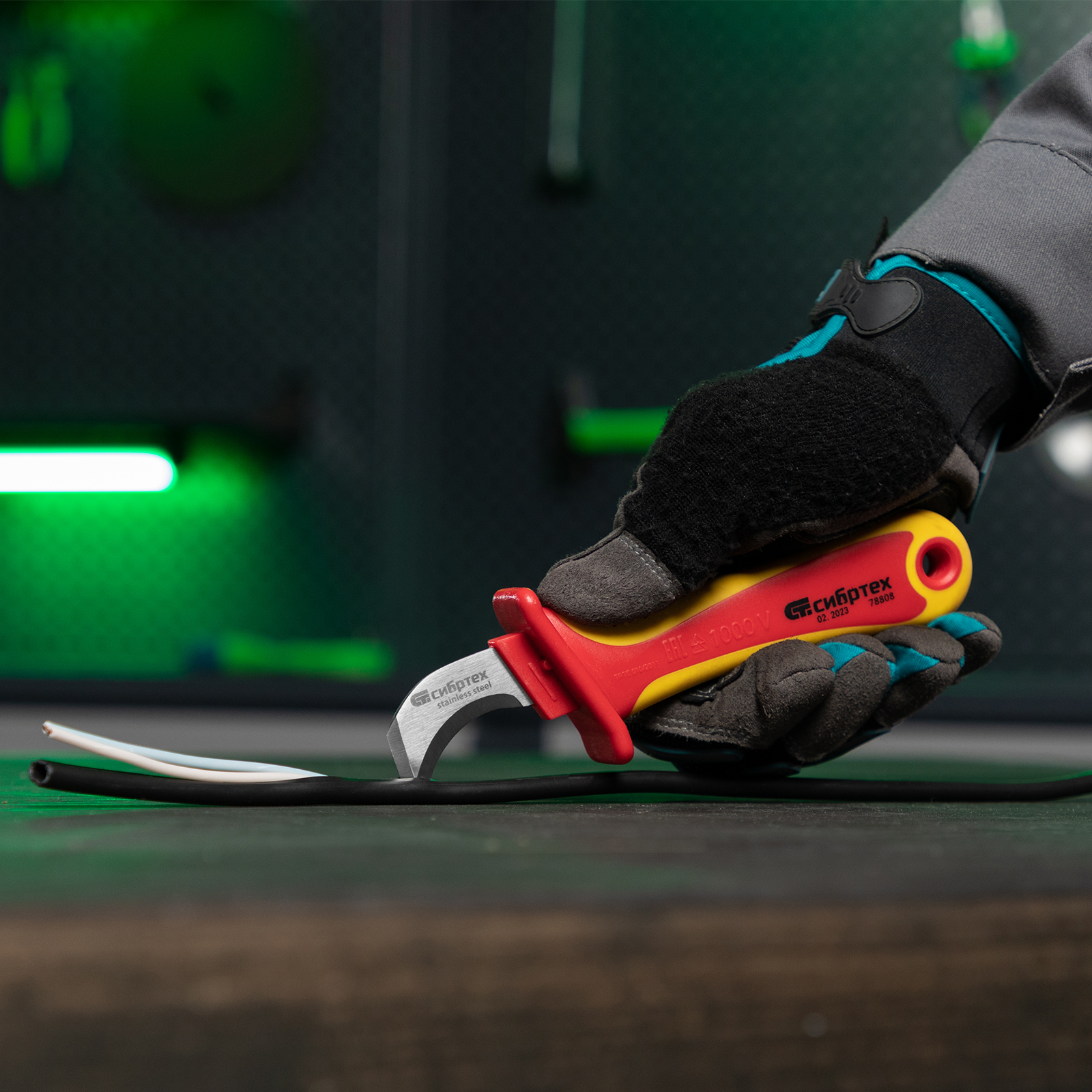 - Высокое качество — нож полностью безопасен и соответствует нормам ГОСТ при проведении работ с электрикой под напряжением до 1000 В.