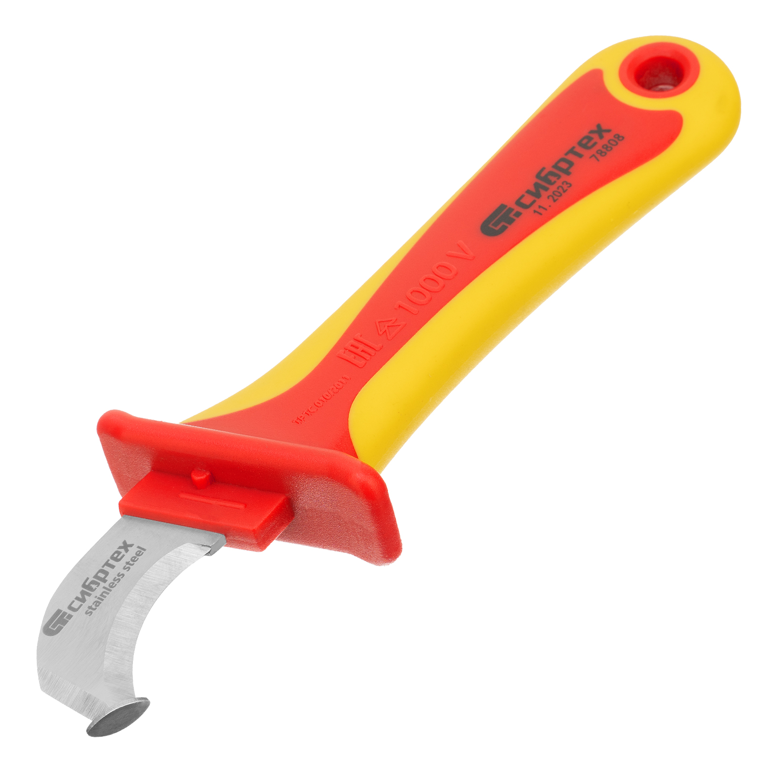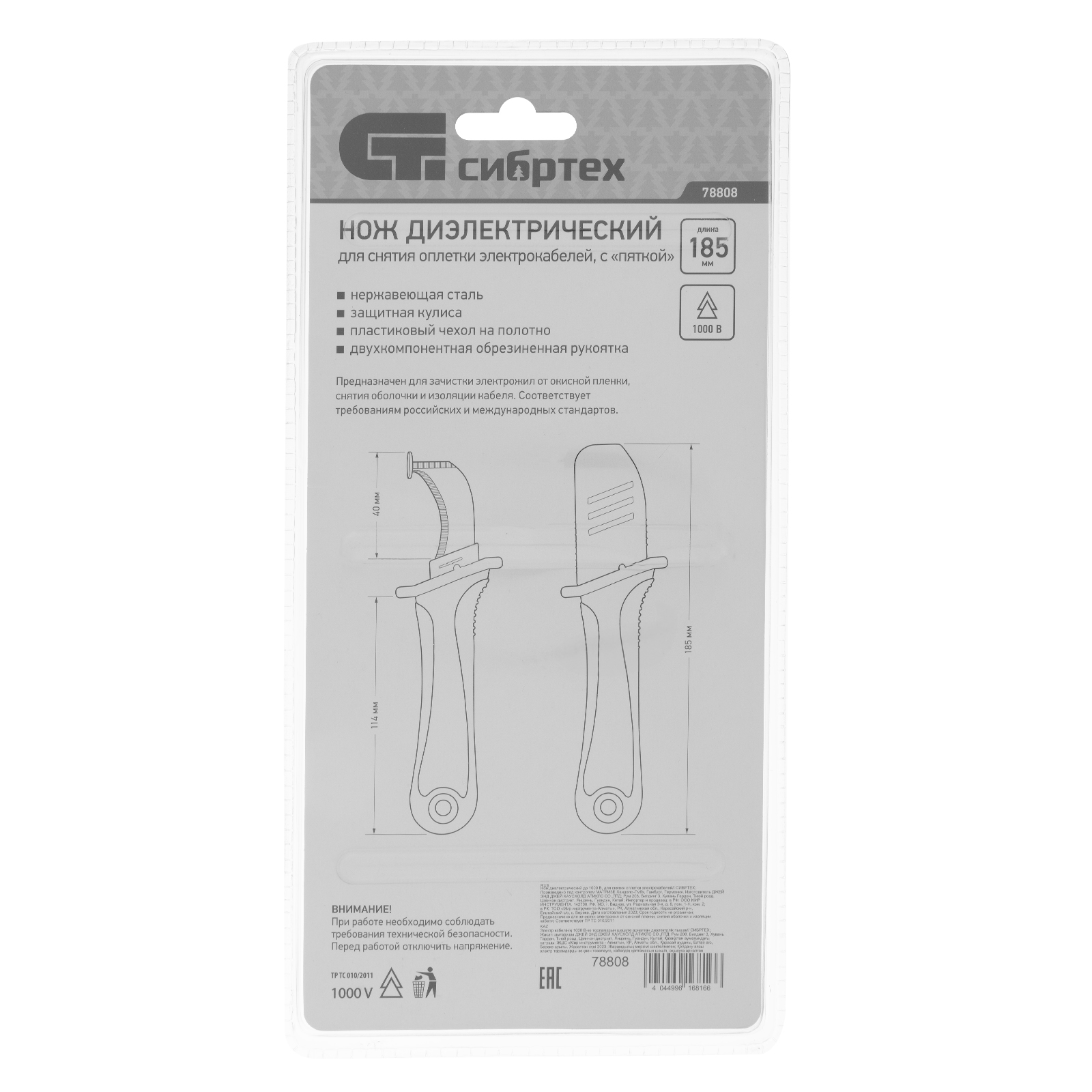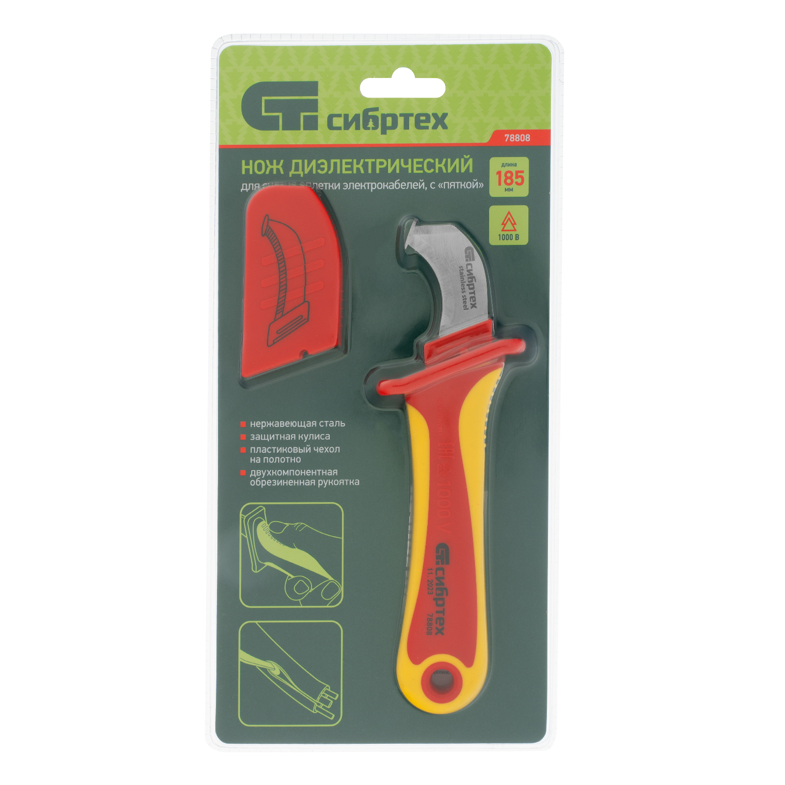 Диэлектрический нож до 1000 В Сибртех 78808 будет полезен во время электромонтажных работ для снятия оплетки и зачистки жил электрокабелей. Во время использования необходимо соблюдать требования технической безопасности, перед выполнением работ требуется отключить напряжение.