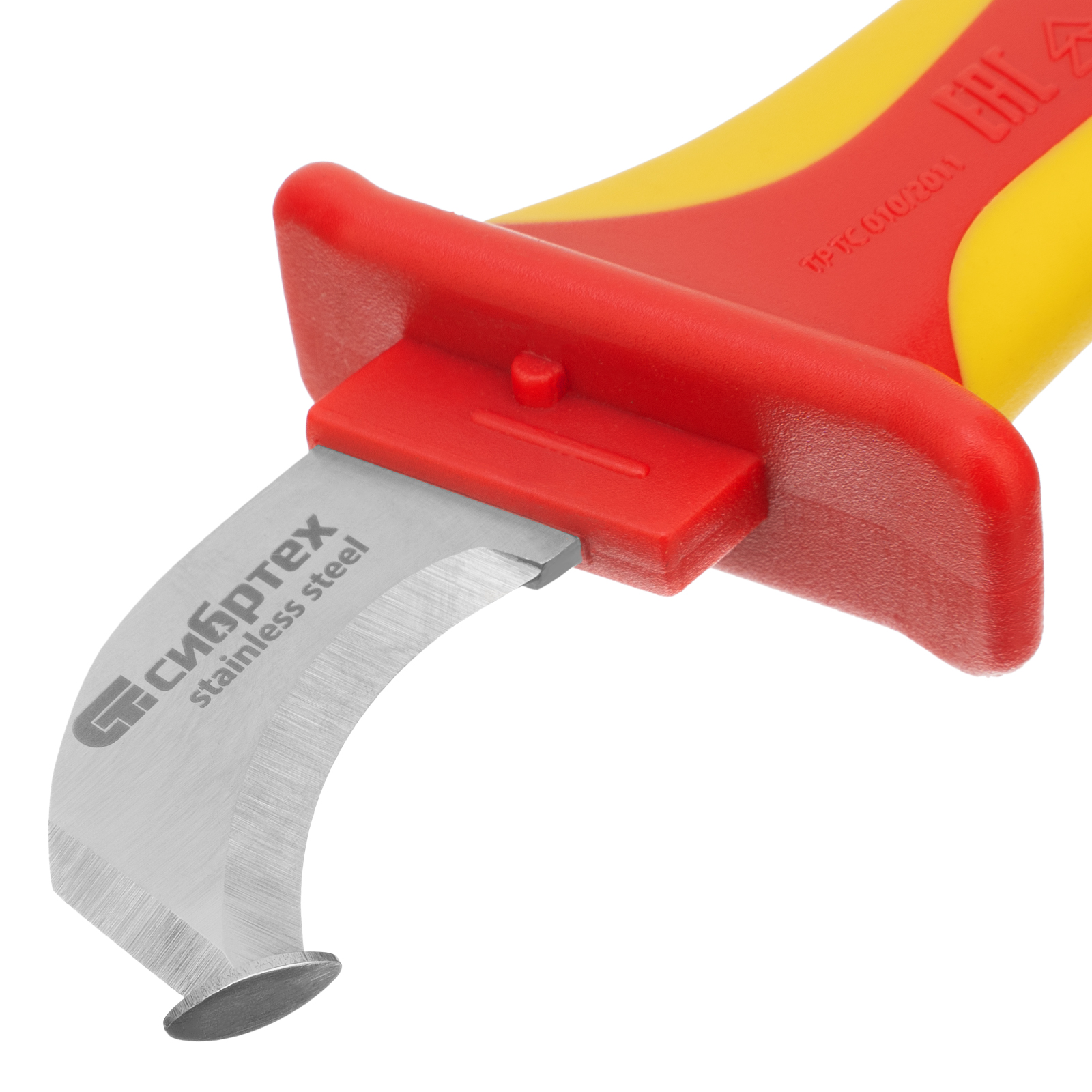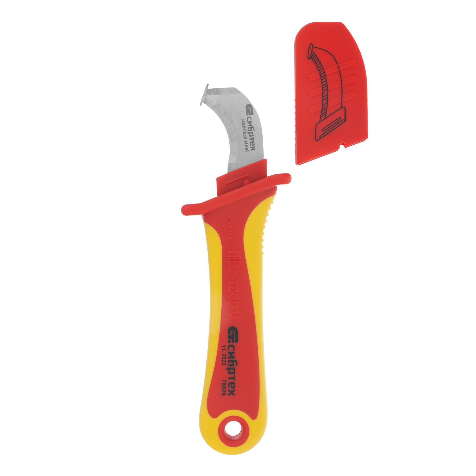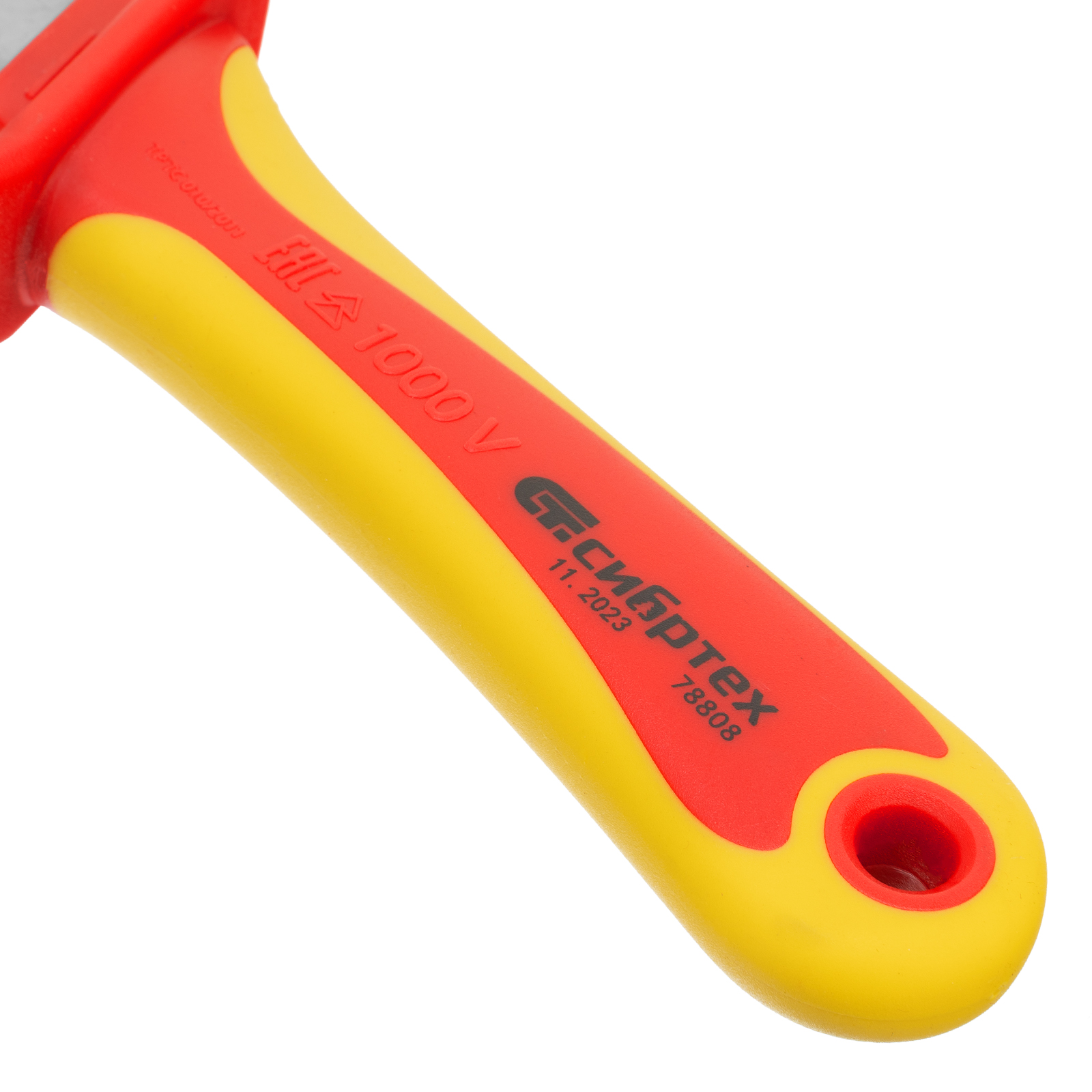 Диэлектрический нож до 1000 В Сибртех 78808 будет полезен во время электромонтажных работ для снятия оплетки и зачистки жил электрокабелей. Во время использования необходимо соблюдать требования технической безопасности, перед выполнением работ требуется отключить напряжение.