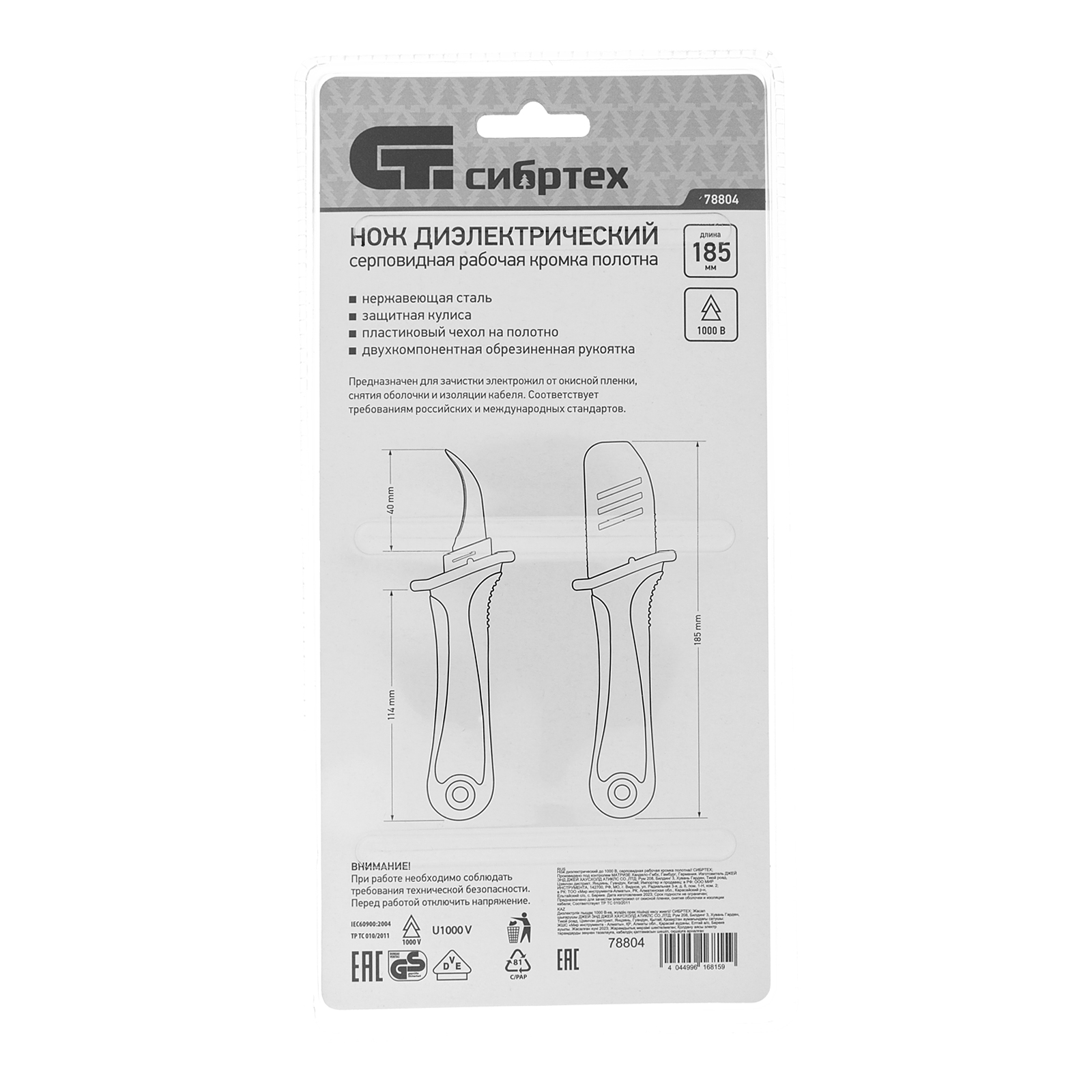 - Высокое качество — нож полностью безопасен и соответствует нормам ГОСТ при проведении работ с электрикой под напряжением до 1000 В.