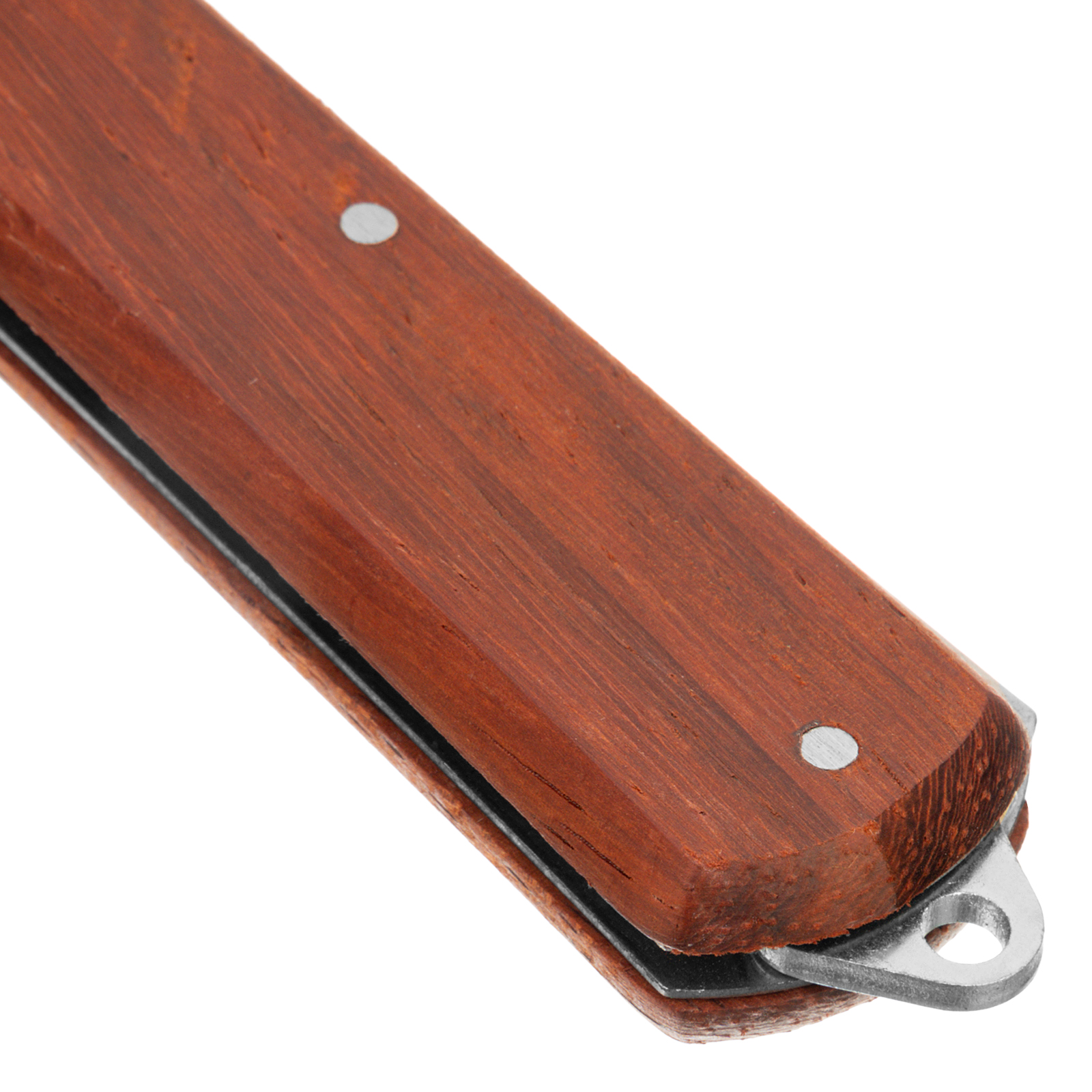 - Деревянная ручка не скользит в руке и приятна по тактильным ощущениям, поэтому с ножом комфортно работать.