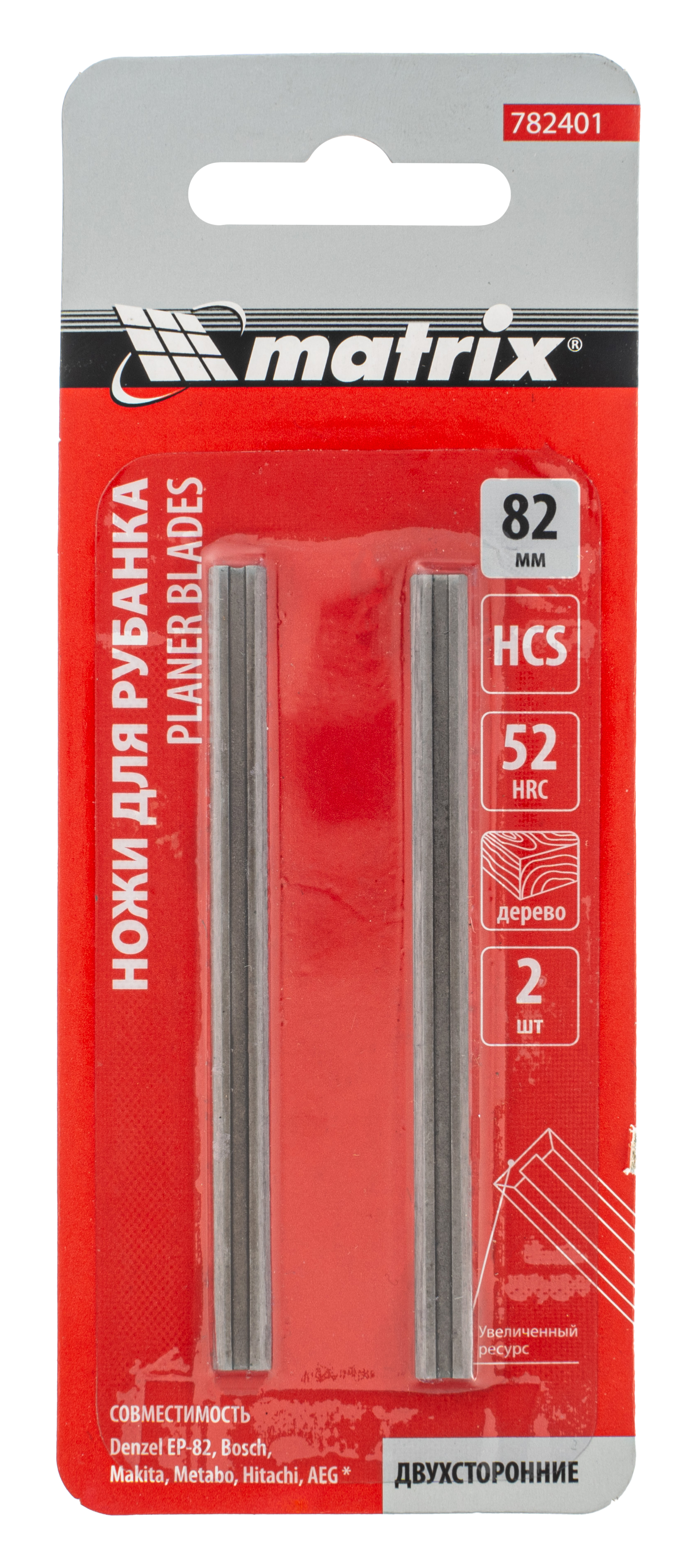 Ножи для электрического рубанка Matrix 782401 — комплект из 2 сменных режущих элементов длиной 82 мм, изготовленных из стали 65Mn. Предназначены для деревянных поверхностей. Обеспечивают чистоту строгания и ровную поверхность материала. Совместимы с электрорубанками с шириной обработки 82 мм.