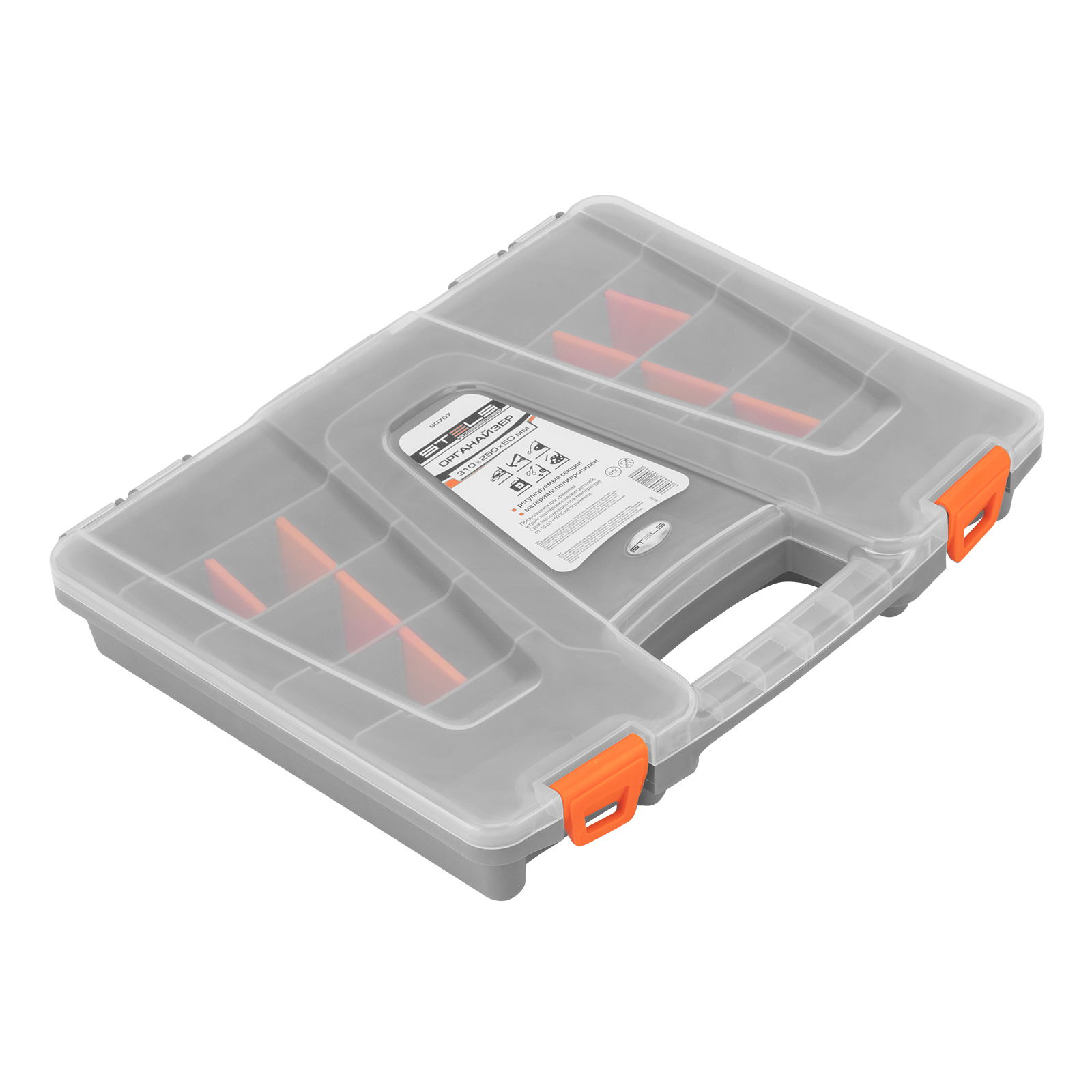 Органайзер из пластика Stels 90707 размером 310 х 250 х 50 мм позволяет обустроить практичное место хранения мелких деталей. Также его удобно брать с собой на выездные работы. Органайзер помогает поддерживать порядок в мастерской и предотвращает потерю деталей.