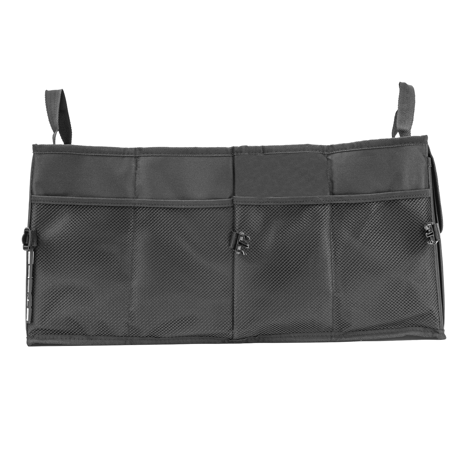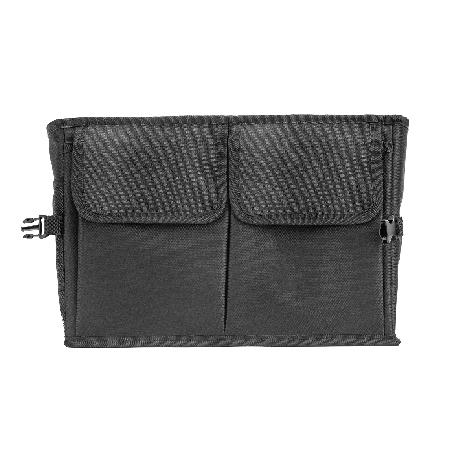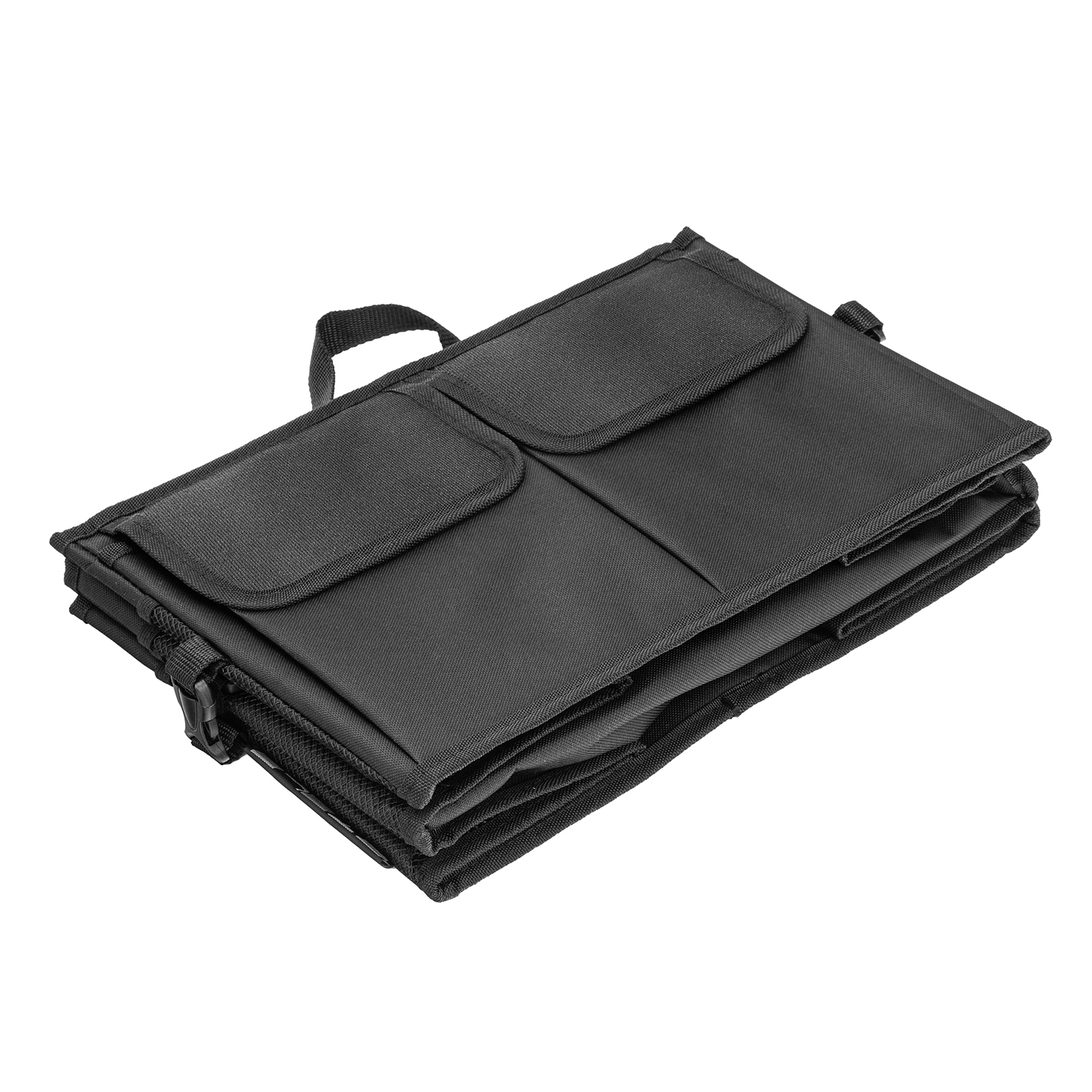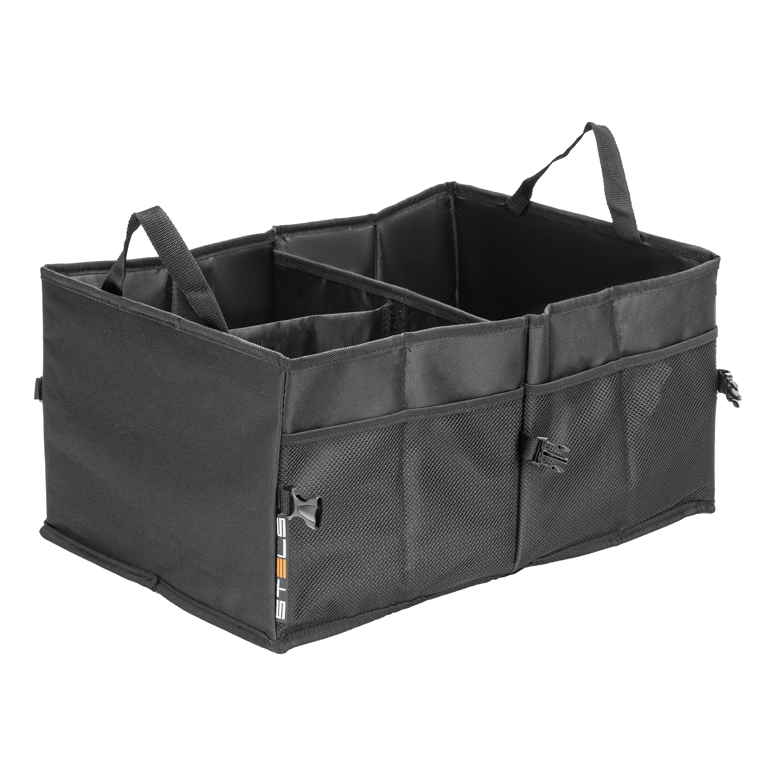 Складной автомобильный органайзер Stels 54395 предназначен для компактного размещения вещей в багажнике. Два больших отделения и сетчатые карманы позволяют хранить габаритные инструменты и мелкие предметы. Благодаря органайзеру инструменты не будут кататься по багажнику во время движения.