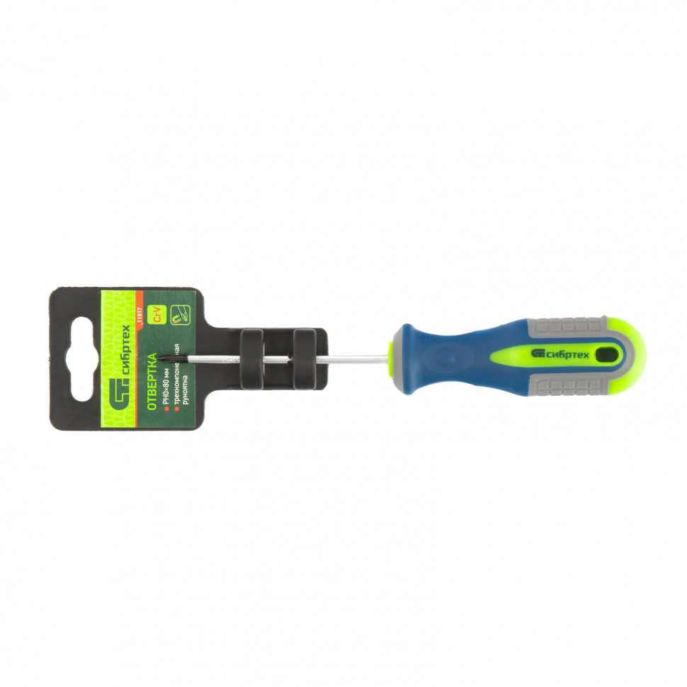 Отвертка Сибртех 11817, PH0 х 80 мм, из стали CrV, с 3-х компонентной рукояткой, пригодится частным мастерам для монтажа/демонтажа крепежных элементов типоразмера PH0. Она поможет произвести ремонтные и монтажные работы дома, в гараже, на даче. Благодаря стержню длиной 80 мм отверткой можно работать в углублениях.