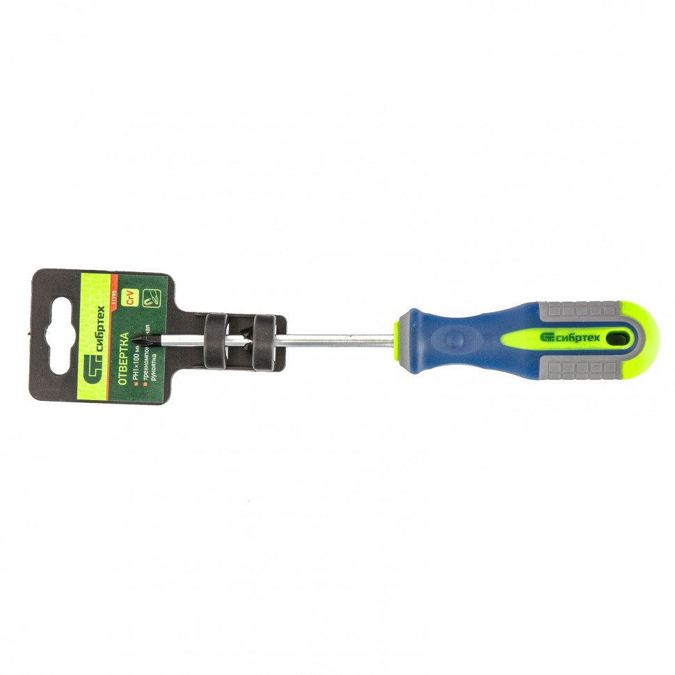 Отвертка Сибртех 11795, PH1 х 100 мм, из стали CrV, с 3-х компонентной рукояткой, пригодится частным мастерам для монтажа/демонтажа крепежных элементов типоразмера PH1. Она поможет произвести ремонтные и монтажные работы дома, в гараже, на даче. Благодаря стержню длиной 100 мм отверткой можно работать в углублениях.