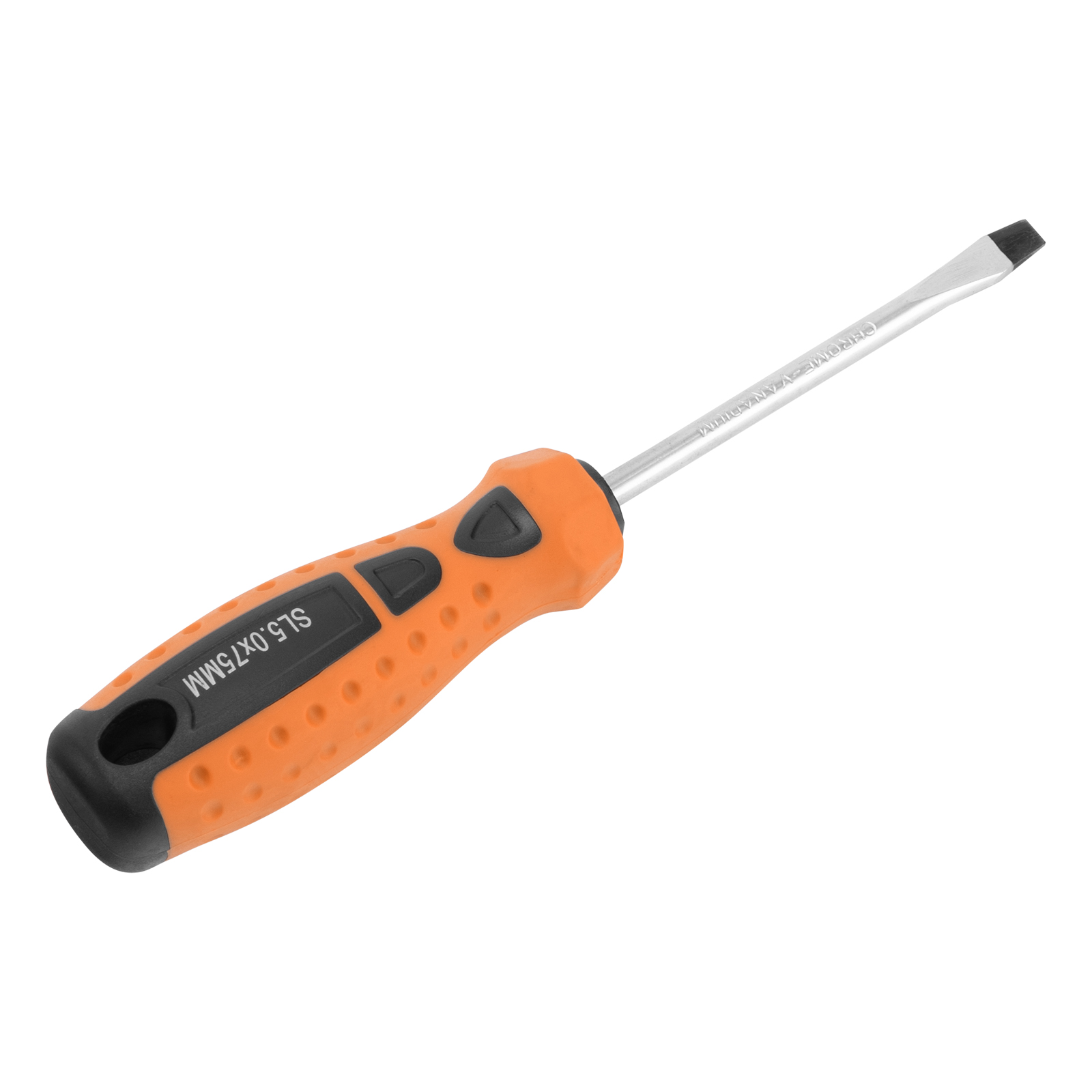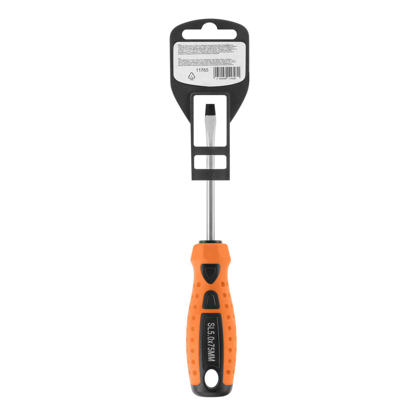 Отвертка Sparta «Point» 11765 из стали CrV, с 2-х компонентной рукояткой, рассчитана на бытовое применение для работ с крепежом типоразмера SL5,0. Она пригодится мастерам при осуществлении мелких ремонтных работ. Стержень длиной 75 мм позволяет закручивать и извлекать крепеж как с поверхностей, так и из углублений.