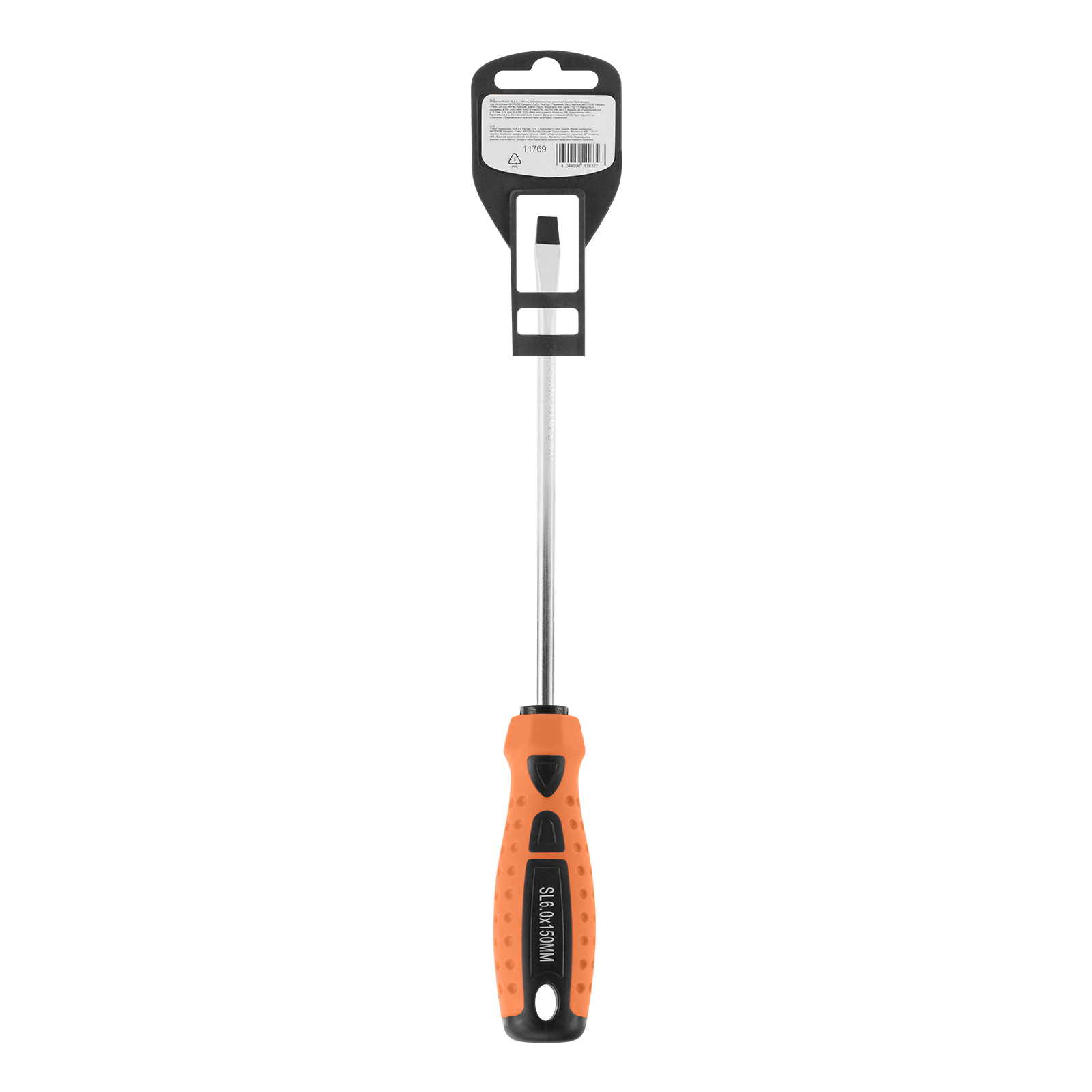 Отвертка Sparta «Point» 11769 из стали CrV, с 2-х компонентной рукояткой, рассчитана на бытовое применение для работ с крепежом типоразмера SL6,0. Она пригодится мастерам при осуществлении мелких ремонтных работ. Стержень длиной 150 мм позволяет закручивать и извлекать крепеж как с поверхностей, так и из углублений.