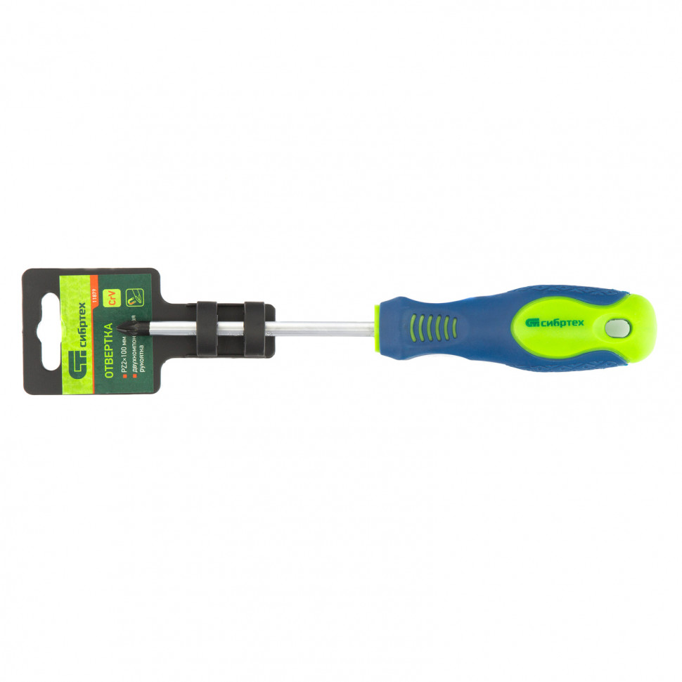 Отвертка Сибртех 11879, PZ2 х 100 мм, из стали CrV, с 2-х компонентной рукояткой, оснащена крестовым шлицем с 4 дополнительными насечками для лучшего сцепления с крепежом. Она подходит для монтажа/демонтажа крепежных элементов типа Pozidriv. Отвертка полупрофессионального класса поможет при сборке мебели, установке полок и т.д. Стержнем длиной 100 мм удобно работать на поверхностях и в углублениях.
