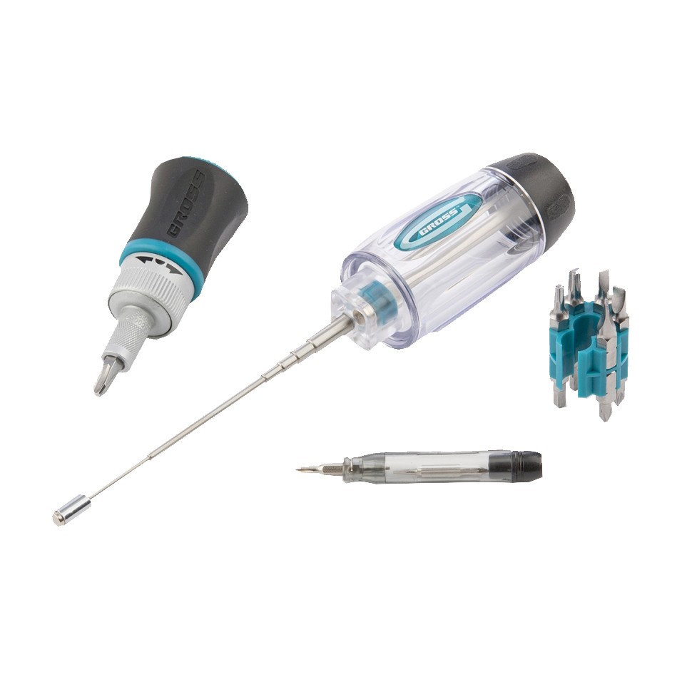 Отвертка реверсивная - 1 шт, Биты 25 мм: PH0, PH1, PH2, PH3, SL4, SL5, SL6, T15, T25, H3, H4 - 11 шт, Отвертка для точных работ - 1 шт, Двусторонние биты для точных работ: PH00/SL2/0, PH0/SL15 - 2 шт, Магнитный щуп - 1 шт |