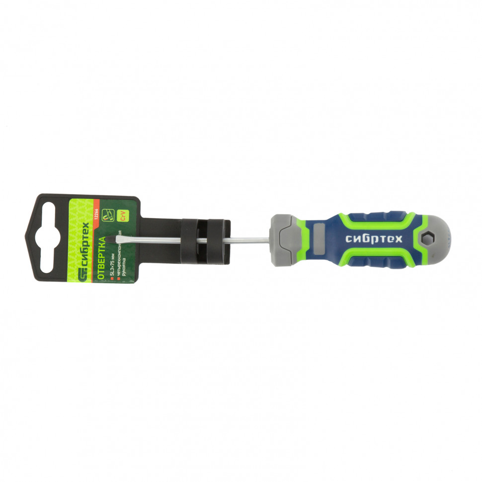 Отвертка Сибртех 12266, SL3,0 х 75 мм, из стали CrV, с 4-х компонентной рукояткой, используется при проведении работ, требующих приложения серьезного крутящего момента. Отвертка со шлицем Slotted подходит для закручивания и извлечения крепежа аналогичного типа. Стержнем длиной 75 мм удобно работать в углублениях и на поверхностях.