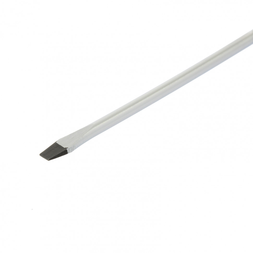 - Отвертка отличается высоким качеством исполнения — стержень изготовлен из хромованадиевой стали, а шлиц закален до твердости 50-55 HRC.