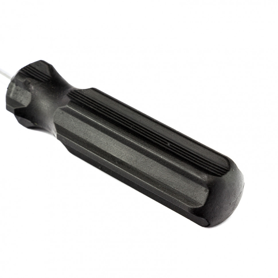 - Рельефные ребра на рукоятке обеспечивают надежное удержание отвертки.
