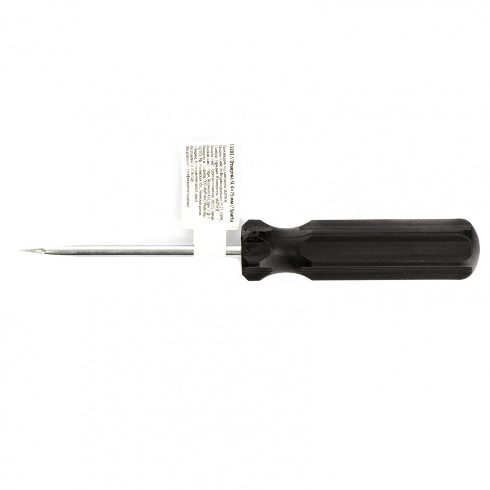 Отвертка Sparta 13203, SL4 х 75 мм, из углеродистой стали, с черной пластиковой рукояткой, предназначена для бытового применения. С ее помощью можно произвести монтаж или демонтаж крепежных элементов со шлицами Slotted. Отвертка имеет стержень 75 мм для работы в углублениях и с легкодоступным крепежом.