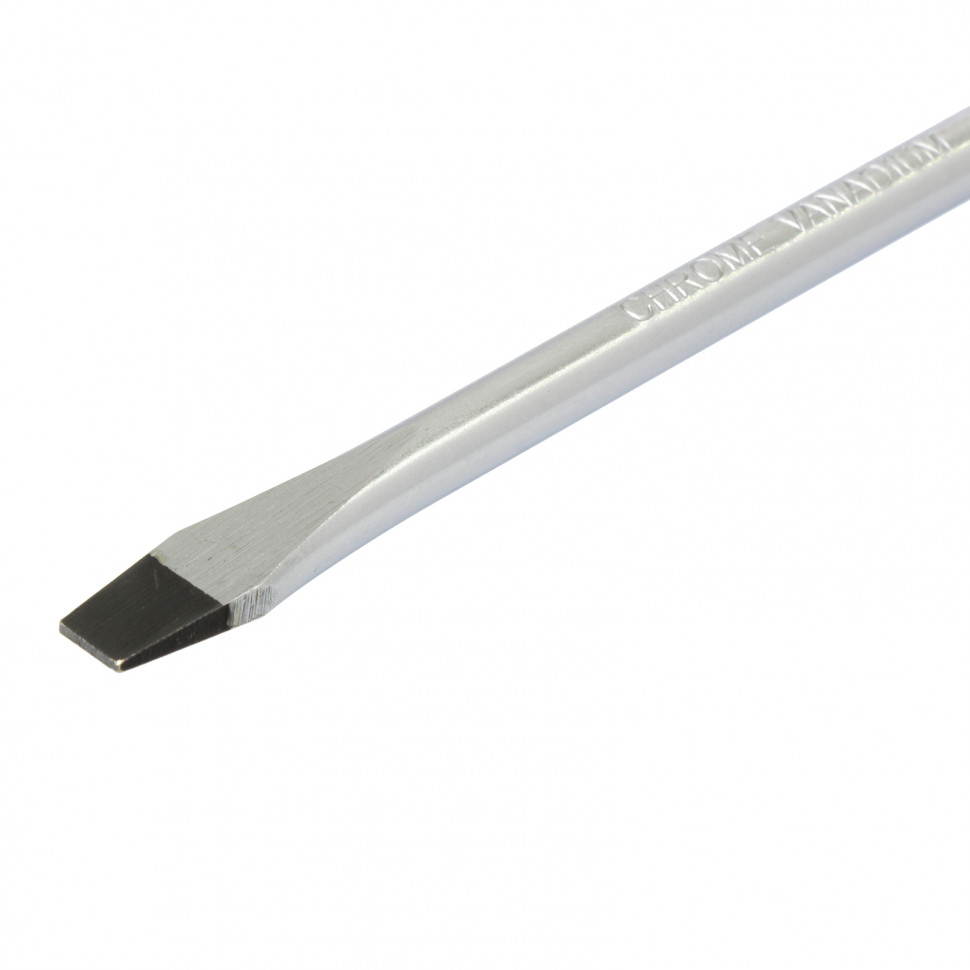 - Отвертка отличается высоким качеством исполнения — стержень изготовлен из хромованадиевой стали, а шлиц закален до твердости 50-55 HRC.