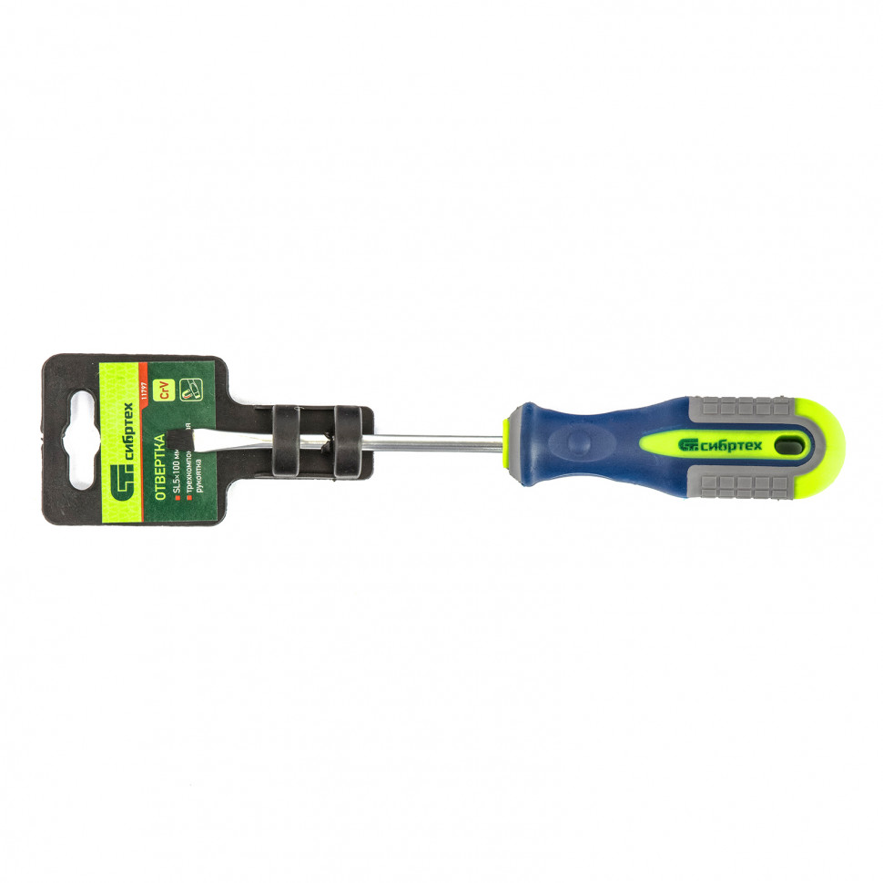 Отвертка Сибртех 11797, SL5,0 х 100 мм, из стали CrV, с 3-х компонентной рукояткой, пригодится для монтажа/демонтажа резьбовых соединений типа Slotted. С ее помощью можно осуществить работы, требующие полноценной затяжки крепежа. Стержнем длиной 100 мм удобно работать на поверхностях и в углублениях.