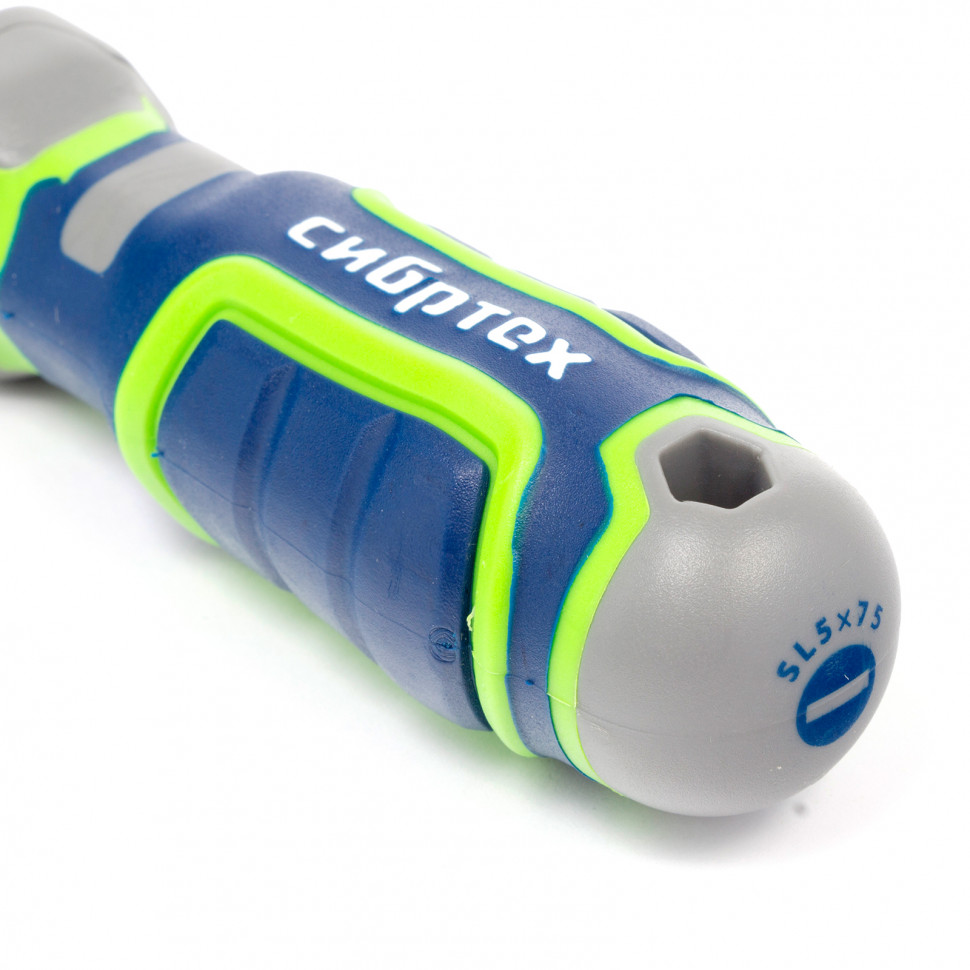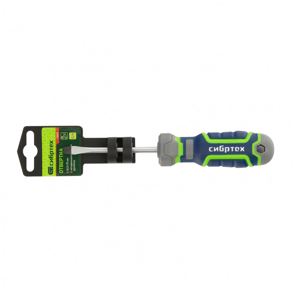 Отвертка Сибртех 12263, SL5,0 х 75 мм, из стали CrV, с 4-х компонентной рукояткой, используется при проведении работ, требующих приложения серьезного крутящего момента. Отвертка со шлицем Slotted подходит для закручивания и извлечения крепежа аналогичного типа. Стержнем длиной 75 мм удобно работать в углублениях и на поверхностях.