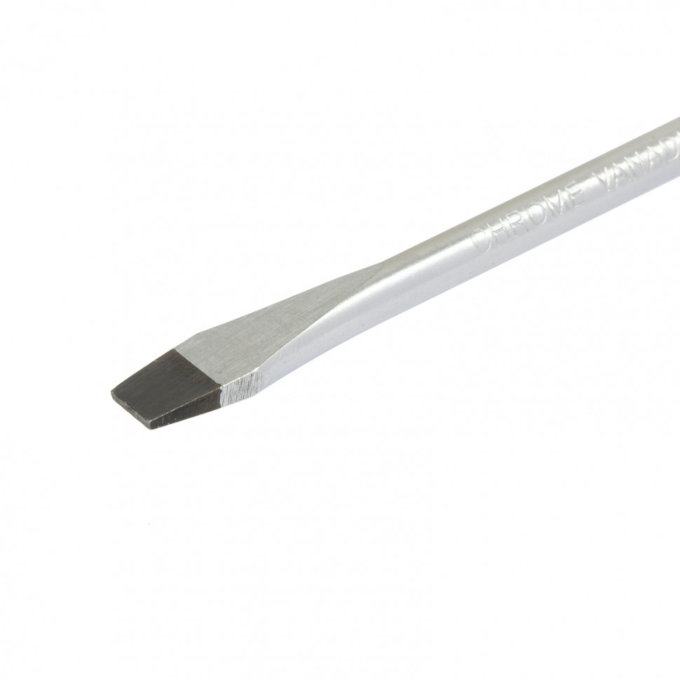 - Отвертка отличается высоким качеством исполнения — стержень изготовлен из хромованадиевой стали, а шлиц закален до твердости 50-55 HRC.