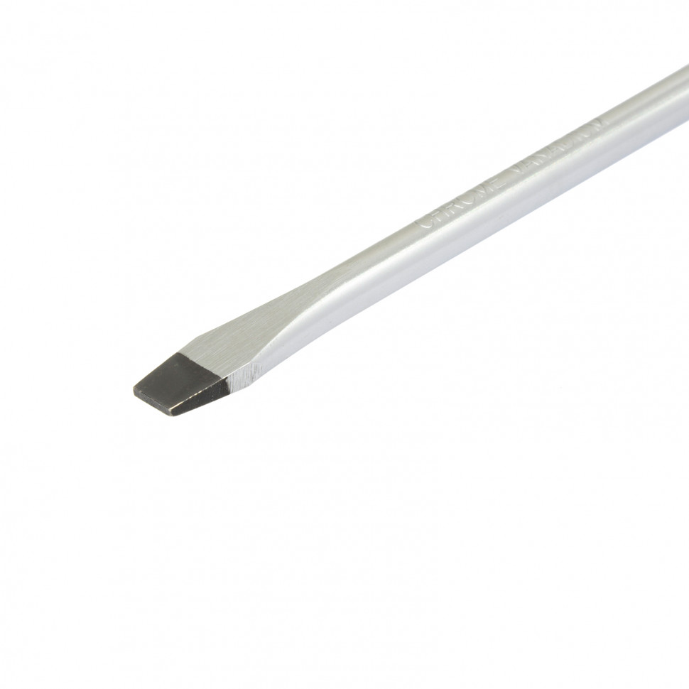 - Отвертка отличается высоким качеством исполнения — стержень изготовлен из хромованадиевой стали, а шлиц закален до твердости 50-55 HRC.