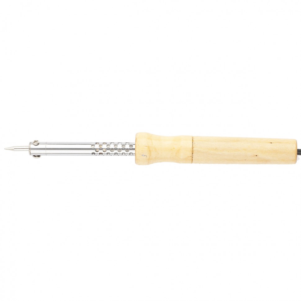 Паяльник Sparta 913135 мощностью 40 Вт, с деревянной ручкой, работает от сети 220 В и используется для пайки проводки и электронных компонентов. Керамический нагревательный элемент обеспечивает длительную работу без отключения прибора для охлаждения. Паяльник будет полезен во время электромонтажных работ.