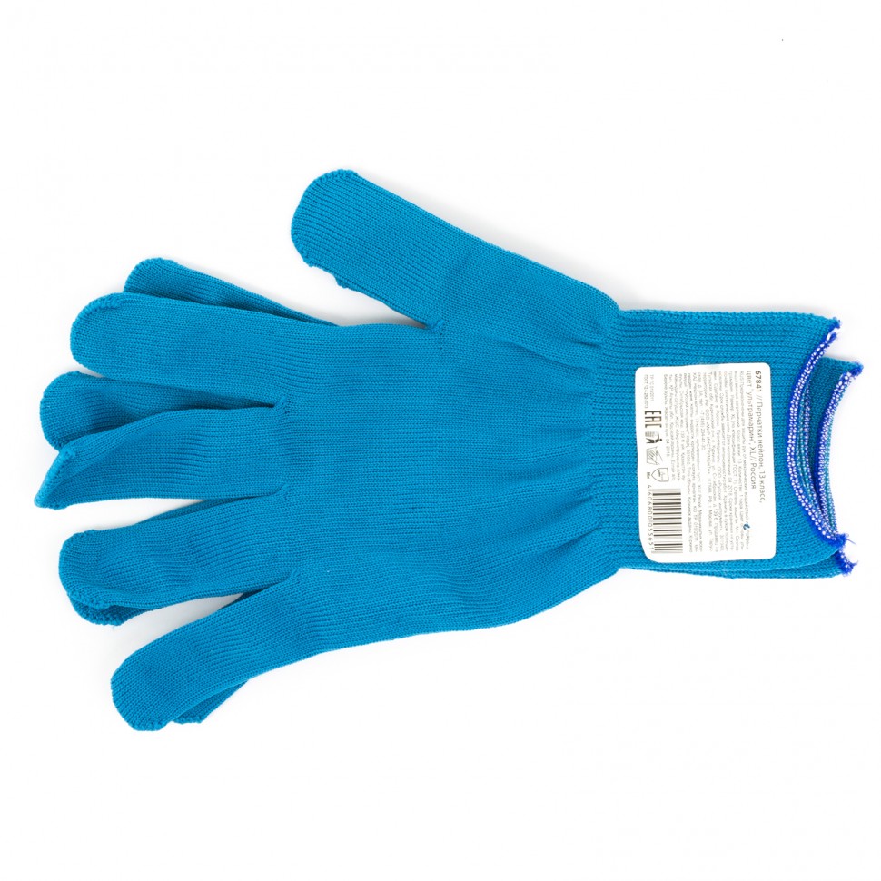 Перчатки из синтетической нити 67841, цвета «ультрамарин», 13 класс вязки, размера XL, применяются для защиты рук от царапин и ссадин. Они станут незаменимым помощником при осуществлении строительных, ремонтных, садовых и других работ. Плотная ткань из тонких синтетических нитей сохраняет высокую чувствительность пальцев, что особенно актуально при проведении точных работ.
