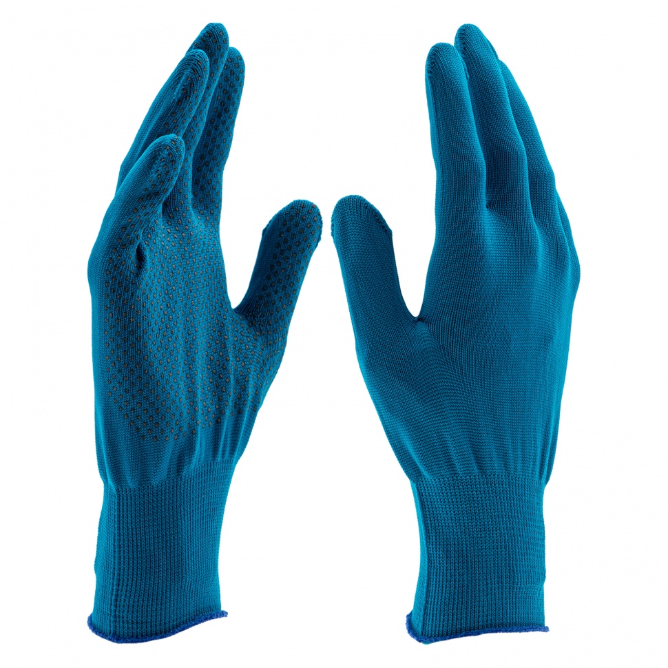 Перчатки из синтетической нити 67846 с ПВХ точкой, цвета «ультрамарин», 13 класс вязки, размера XL, применяются для защиты рук от царапин и ссадин. Они станут незаменимым помощником при осуществлении строительных, ремонтных, садовых и других работ. Плотная ткань из тонких синтетических нитей сохраняет высокую чувствительность пальцев, что особенно актуально при проведении точных работ.