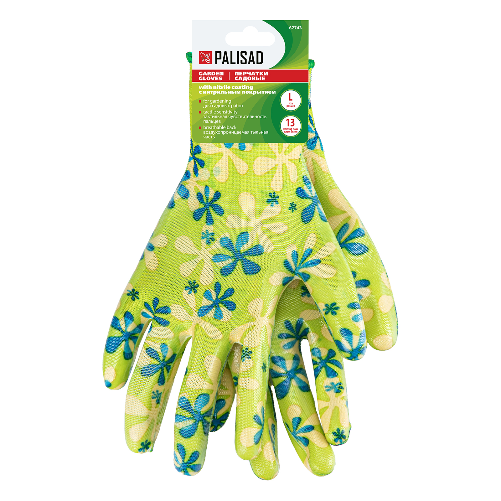 Зеленые садовые перчатки Palisad 67743 из полиэстера с нитрильным обливом, размера L, защищают руки от порезов, проколов, царапин, ссадин и намокания во время садово-огородных работ. Удобно садятся по руке, не стесняя движений. Перчатки пригодятся на дачном участке.