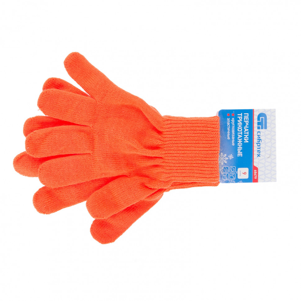 Трикотажные перчатки Сибртех 68679 оранжевого цвета, из акрила, с двойной манжетой, используются при проведении строительных и монтажных работ в условиях пониженных температур. Изготовлены из высокообъемной акриловой пряжи 10 класса вязки, поэтому обладают высокой плотностью и надежно защищают от холода, царапин и ссадин.