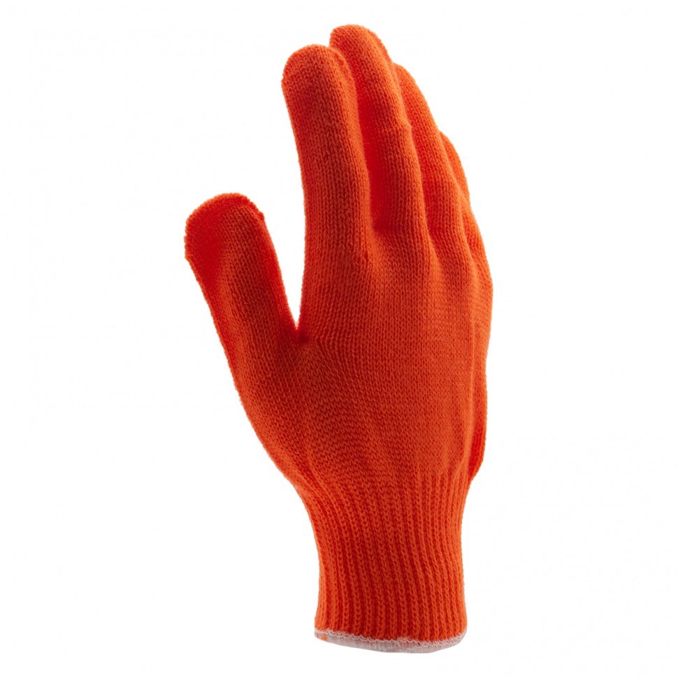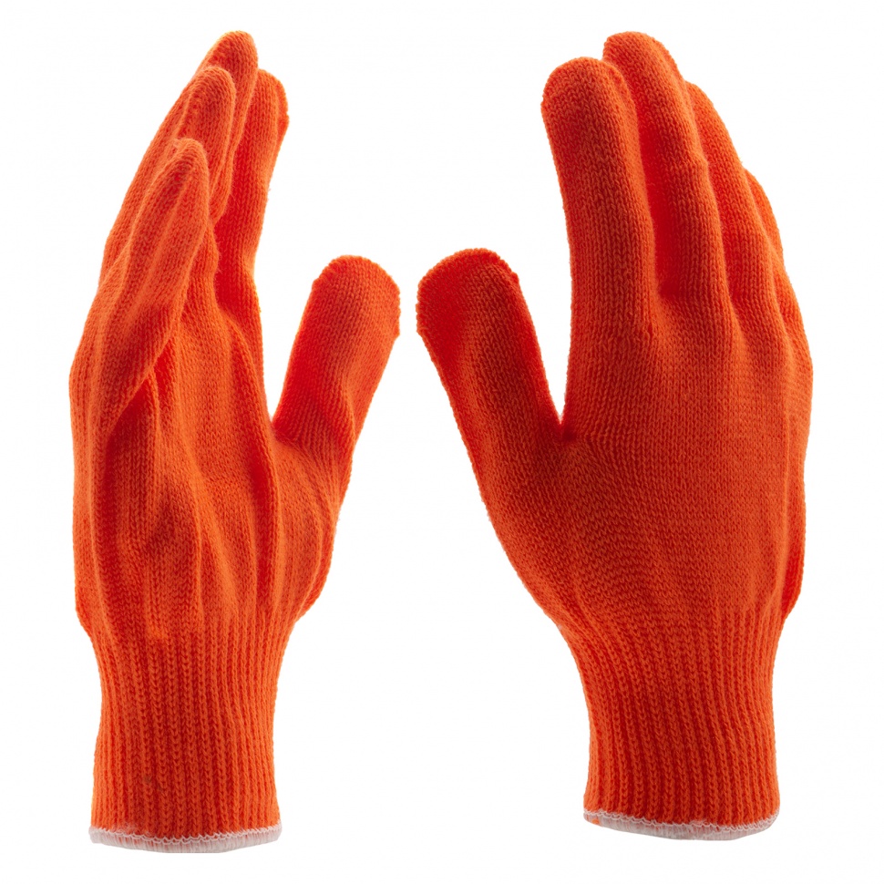 Трикотажные перчатки Сибртех 68659 оранжевого цвета, из акрила, обработанные оверлоком, используют во время строительных и монтажных работ. Они надежно защищают руки от холода, а также от травм и загрязнений. Благодаря своей эластичности перчатки легко надеваются и не стесняют движения пальцев по время работы.